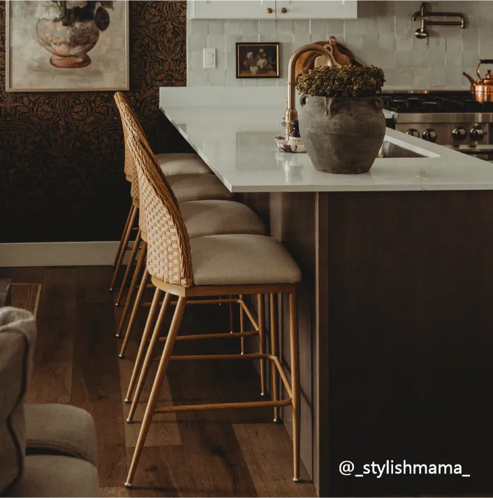 Designed for comfort, the stool features a curved backrest that provides excellent support. The sturdy metal legs, finished with a natural-looking wood grain, add a refined, organic look, while the semi-open footrest creates an airy, open vibe around your kitchen island. Plus, setup is a breeze, as the base arrives pre-assembled.This stool is the perfect blend of relaxed style and functional design for any home.