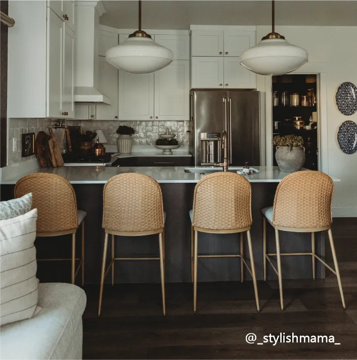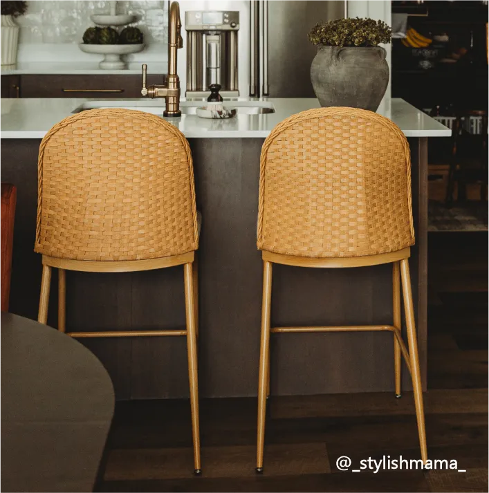 This elegant coastal-inspired rattan counter stool combines style and comfort for your home. With a realistic faux rattan back, it captures the charm of authentic rattan while offering added durability. The soft, textured fabric includes 10% genuine linen, a step up from typical polyester-only upholstery, lending a touch of luxury and a pleasant feel.