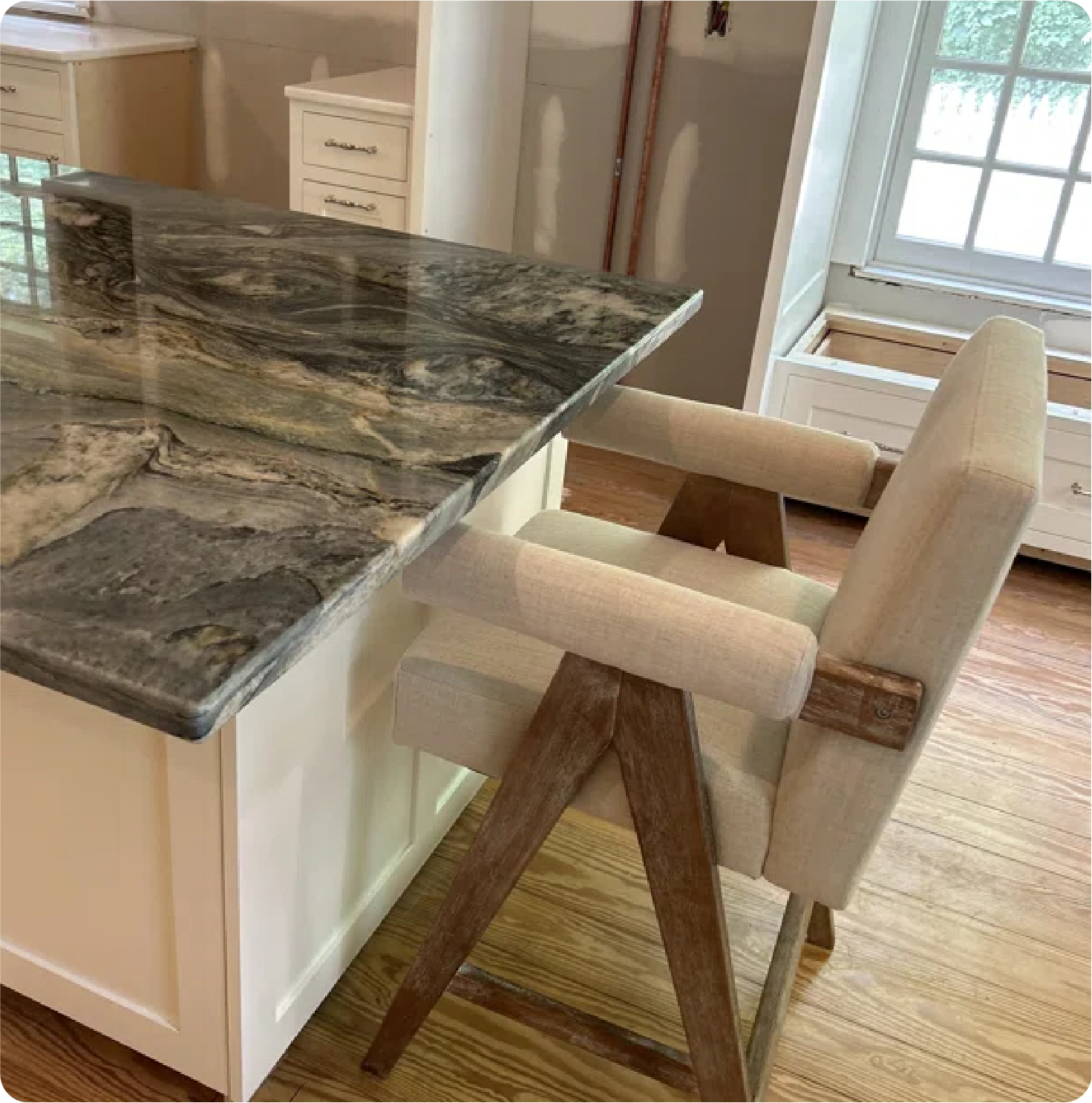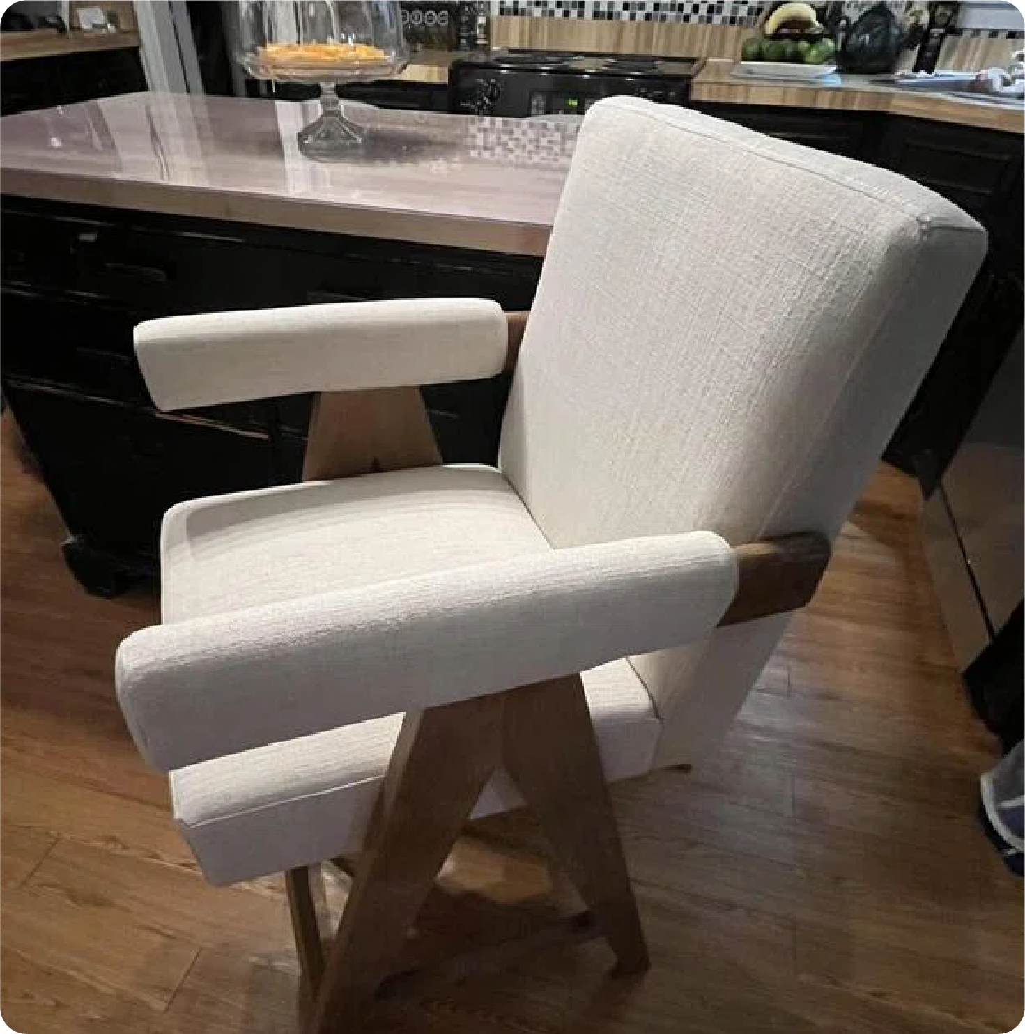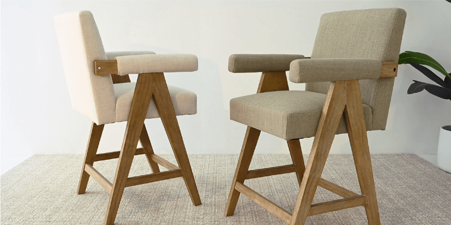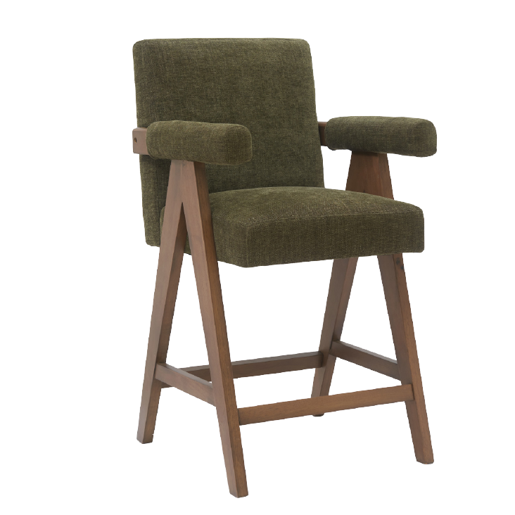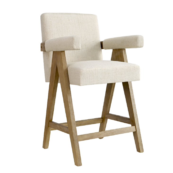 This counter stool is all about comfort and style! With soft-padded armrests, a taller-than-average backrest, and a generously sized seat, it's designed for maximum relaxation. The fabric blends 10% linen and 10% cotton with intentional flecks for a natural, textured look.