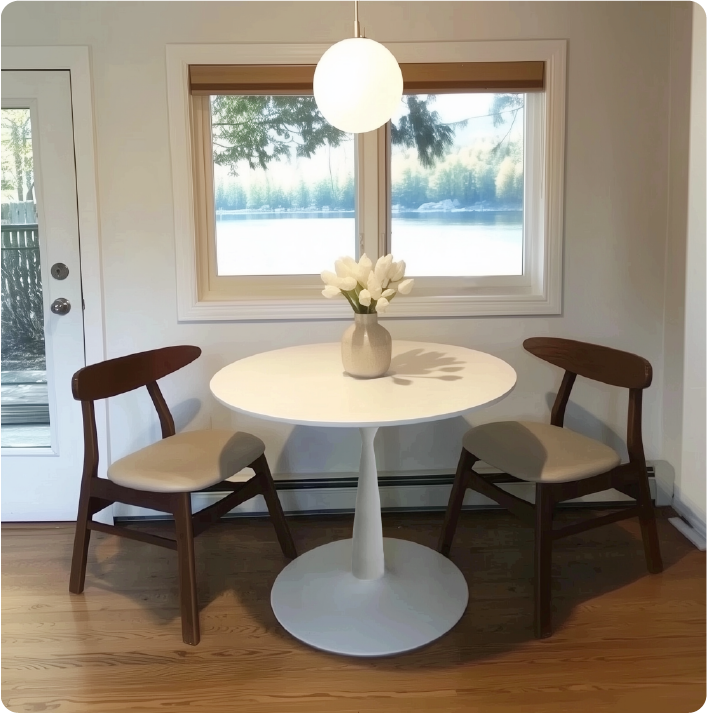To sum up, the New Haven 35" round white dining table is an excellent addition to any home. Its blend of elegant design, durability, and ease of maintenance makes it a functional yet stylish choice that will enhance your dining experience. So, whether you’re starting your day with a cup of coffee, hosting a dinner party, or enjoying a family meal, this table provides the perfect setting. Invest in this round white dining table today and bring simple elegance into your home.