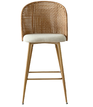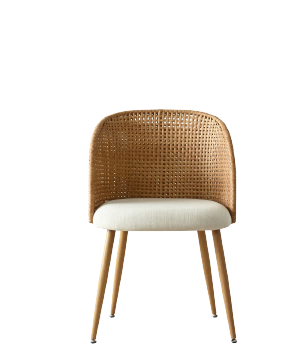 Woven-rattan design hugs a smooth, barrel-back silhouette, infusing relaxed coastal-boho vibes. A light-oak frame and ivory seat pad add organic-modern warmth—perfect for dining rooms that crave breezy beach-house charm and crisp, contemporary lines in a single piece. The full collection spans dining chairs, counter stools, and a range of cushion fabrics. Browse our buyers’ photos to see how seamlessly it fits into any room!