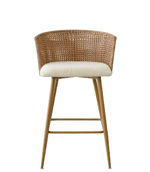 The contemporary bouclé fabric adds a modern, cozy touch that fits right in with any decor.The woven rattan? It's actually high-quality plastic that looks just like the real thing but won't get damp, moldy, or develop odors. The metal legs are incredibly sturdy, with a wood grain finish so realistic they could easily pass for wooden legs.
