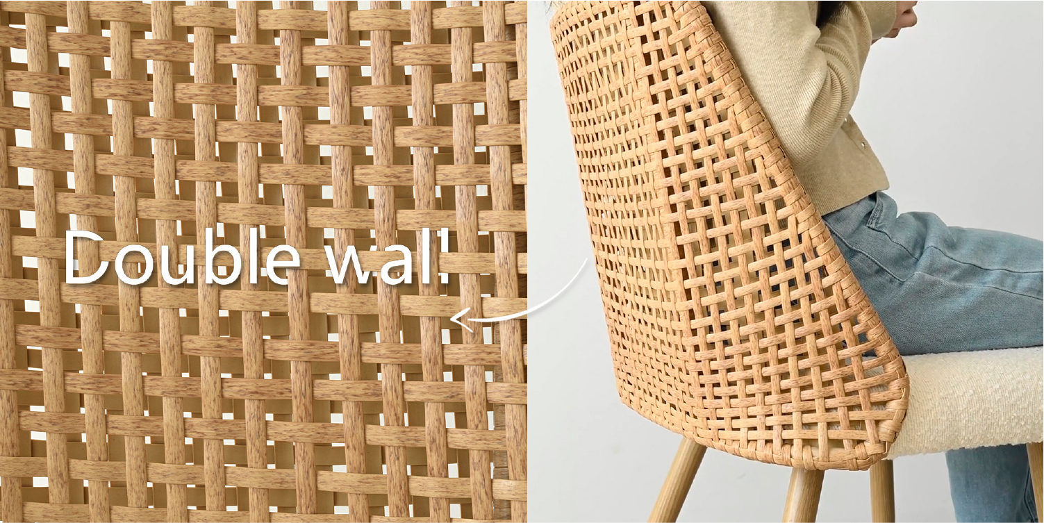 • High-quality plastic rattan looks like the real deal but won't get damp, moldy, or develop odors.