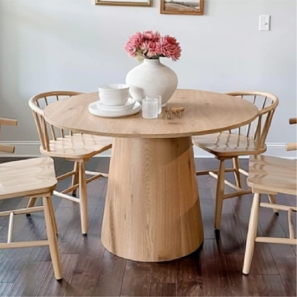 This coffee table is a timeless choice with its simple, effortless design. At 14" high, it sits low to the ground, keeping your space open and airy without blocking the view. The spacious 40" round top has plenty of room for books, drinks, decor—whatever you want within easy reach. Plus, the circular shape gives you extra legroom when you're sitting on the floor, making it even more inviting.Its clean, organic modern silhouette and sleek pedestal base bring a touch of elegance to any room.