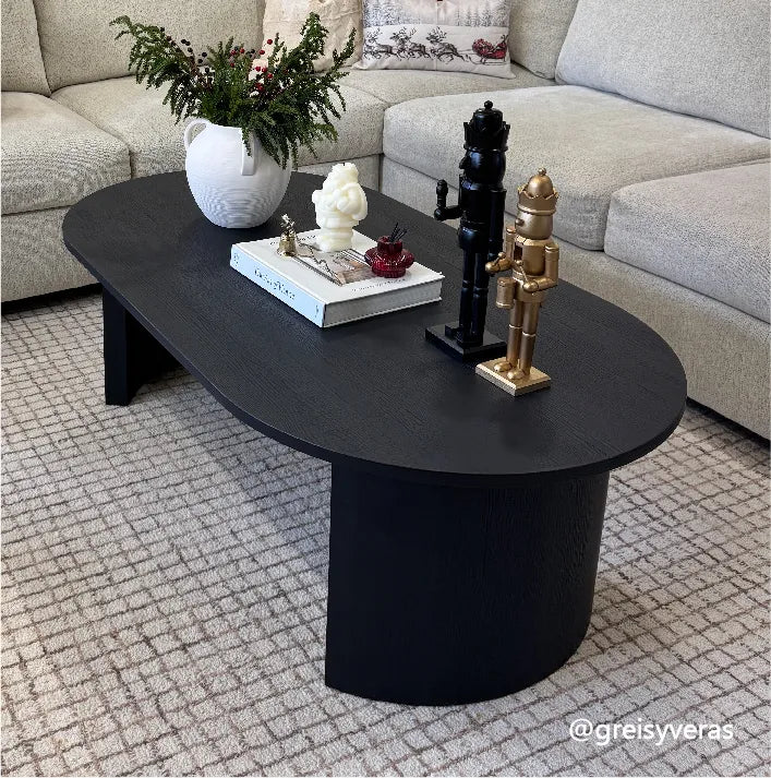 This spacious oval coffee table offers a modern, refined aesthetic with its sleek design. Measuring 51 inches in length, it provides ample surface space, making it perfect for larger living rooms where smaller tables may appear out of place. Crafted from high-quality manufactured wood with a laminated wood-look finish, this table combines durability with style.