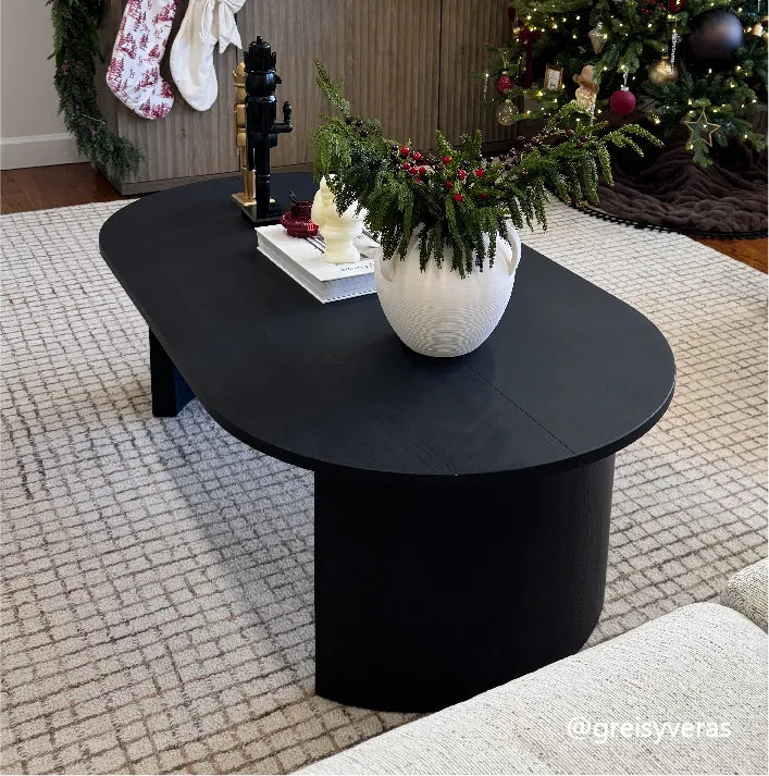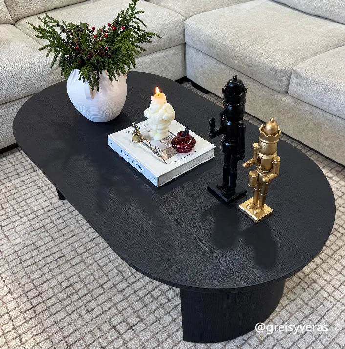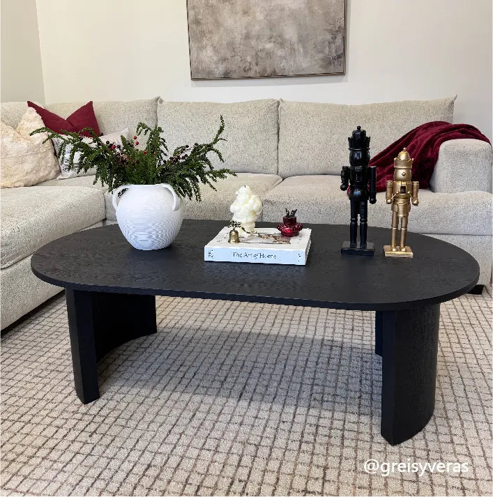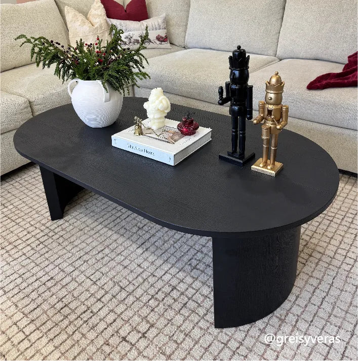 This spacious oval coffee table offers a modern, refined aesthetic with its sleek design. Measuring 51 inches in length, it provides ample surface space, making it perfect for larger living rooms where smaller tables may appear out of place. Crafted from high-quality manufactured wood with a laminated wood-look finish, this table combines durability with style.