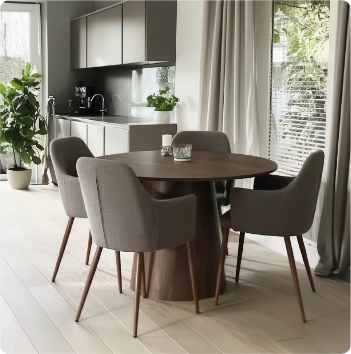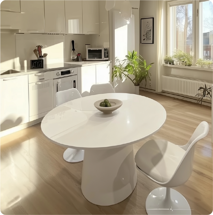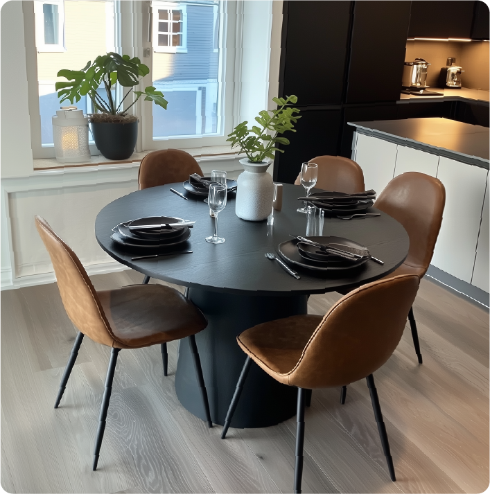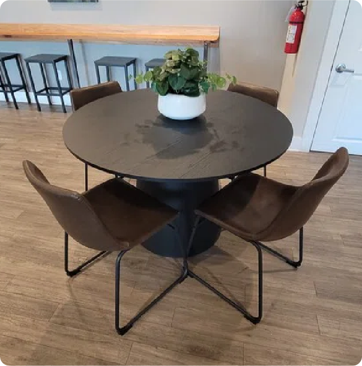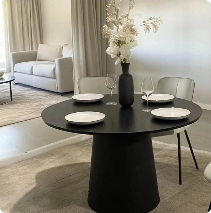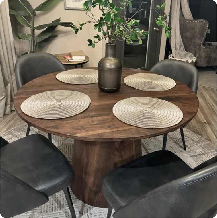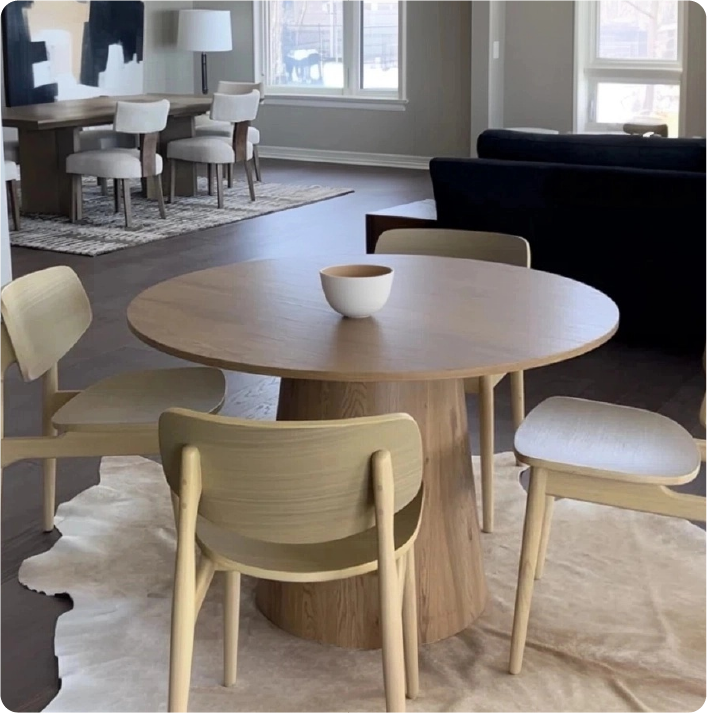 This 46" dining table is perfect for families or gatherings of at least 4 people, comfortably seating 4 and even 5 guests. The sleek pedestal base not only looks modern but also allows for maximum legroom, making your dining experience more comfortable.