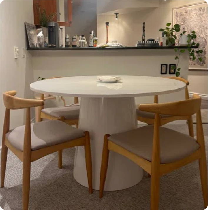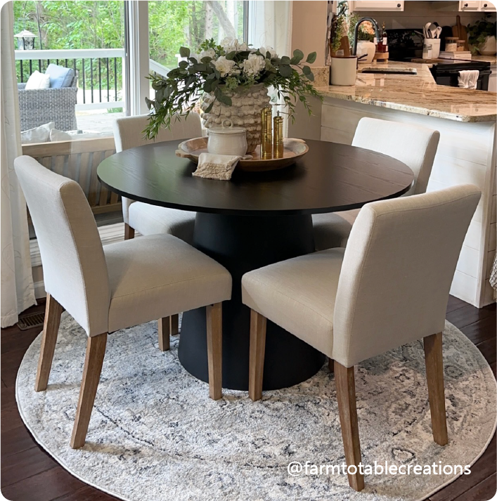 Crafted from manufactured wood with a high-quality veneer, this table comes in two stylish colors. Its versatile design pairs beautifully with any chairs, making it a fail-proof choice for your dining space. Don't just take our word for it—check out our buyer photos to see how amazing it looks!