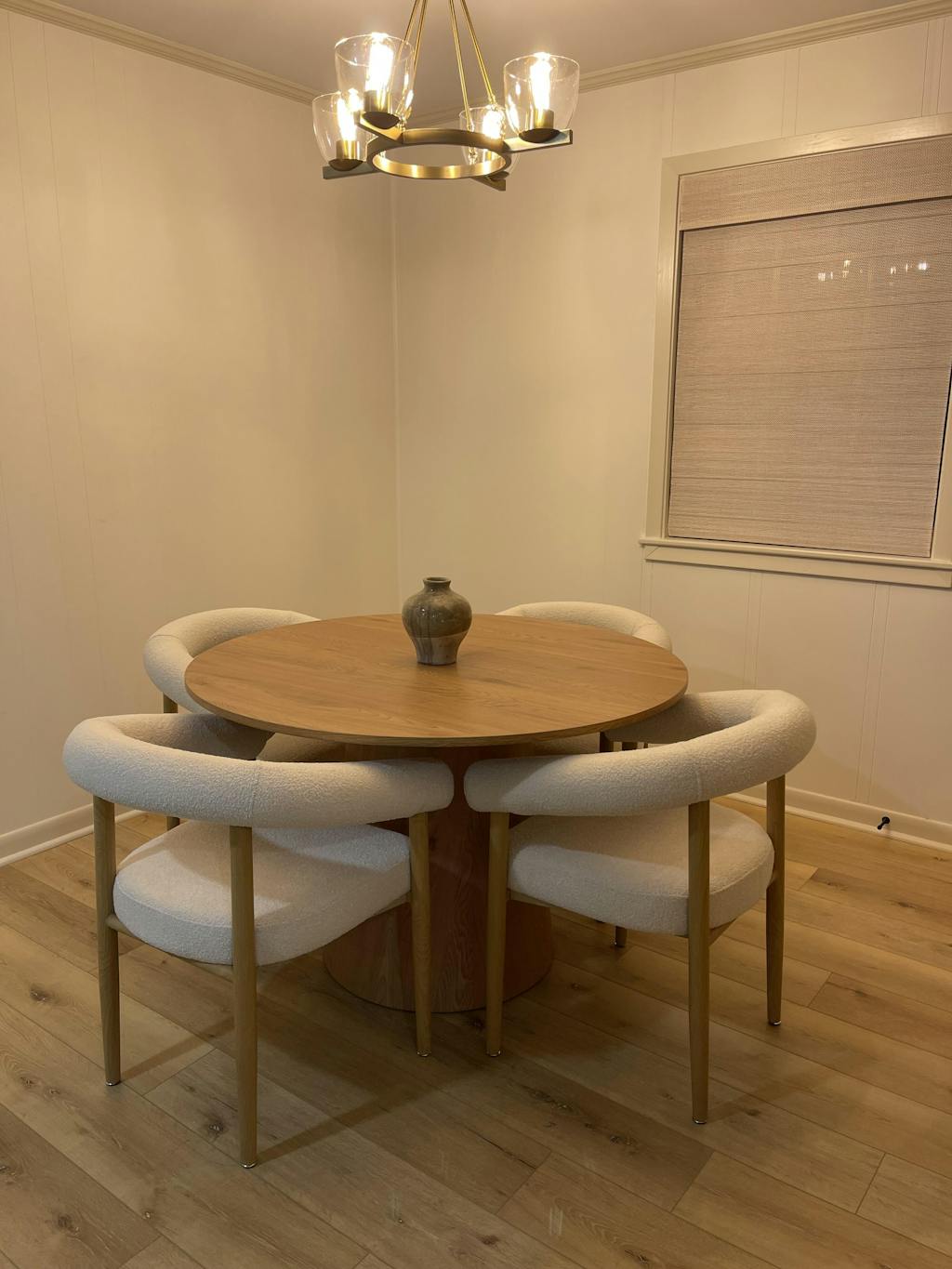 Dwen & Melbourne 46" Round & Boucle Dining Table Set for 4 (5-Piece)