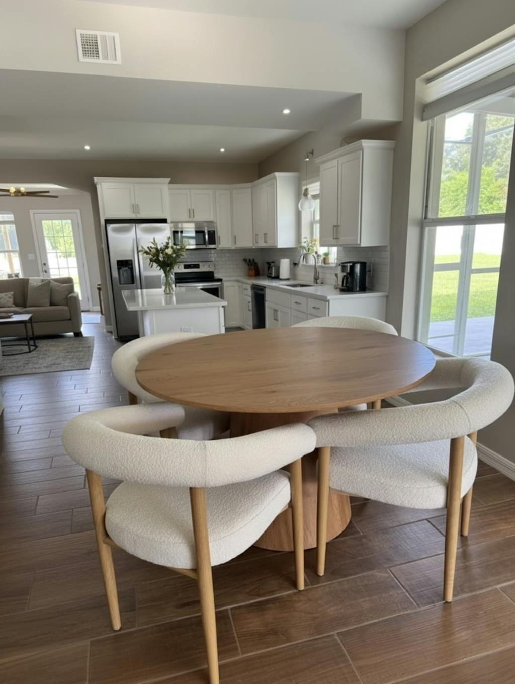 The Dwen & Melbourne 46" Round Boucle Dining Set strikes the perfect balance of elegance, functionality, and durability, making it ideal for both everyday use and special occasions. Explore additional sizes and styles in the collection to suit your needs!