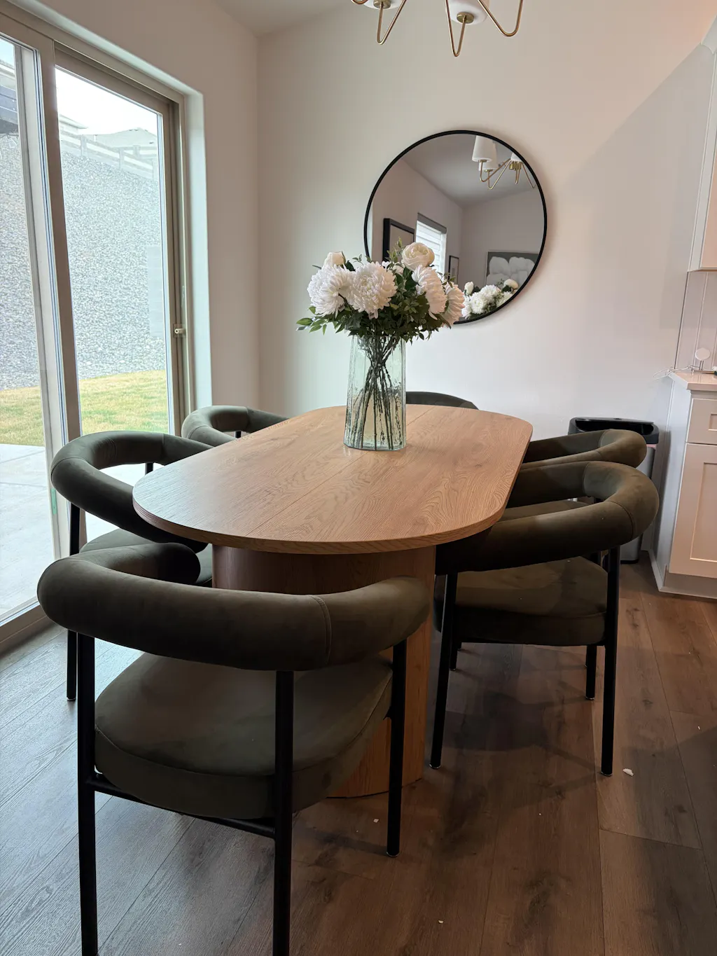 - The modern oval design makes the space look bigger.