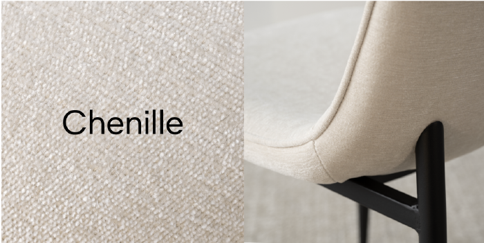- Chenille fabric in gorgeous colors with a subtle, elegant sheen.