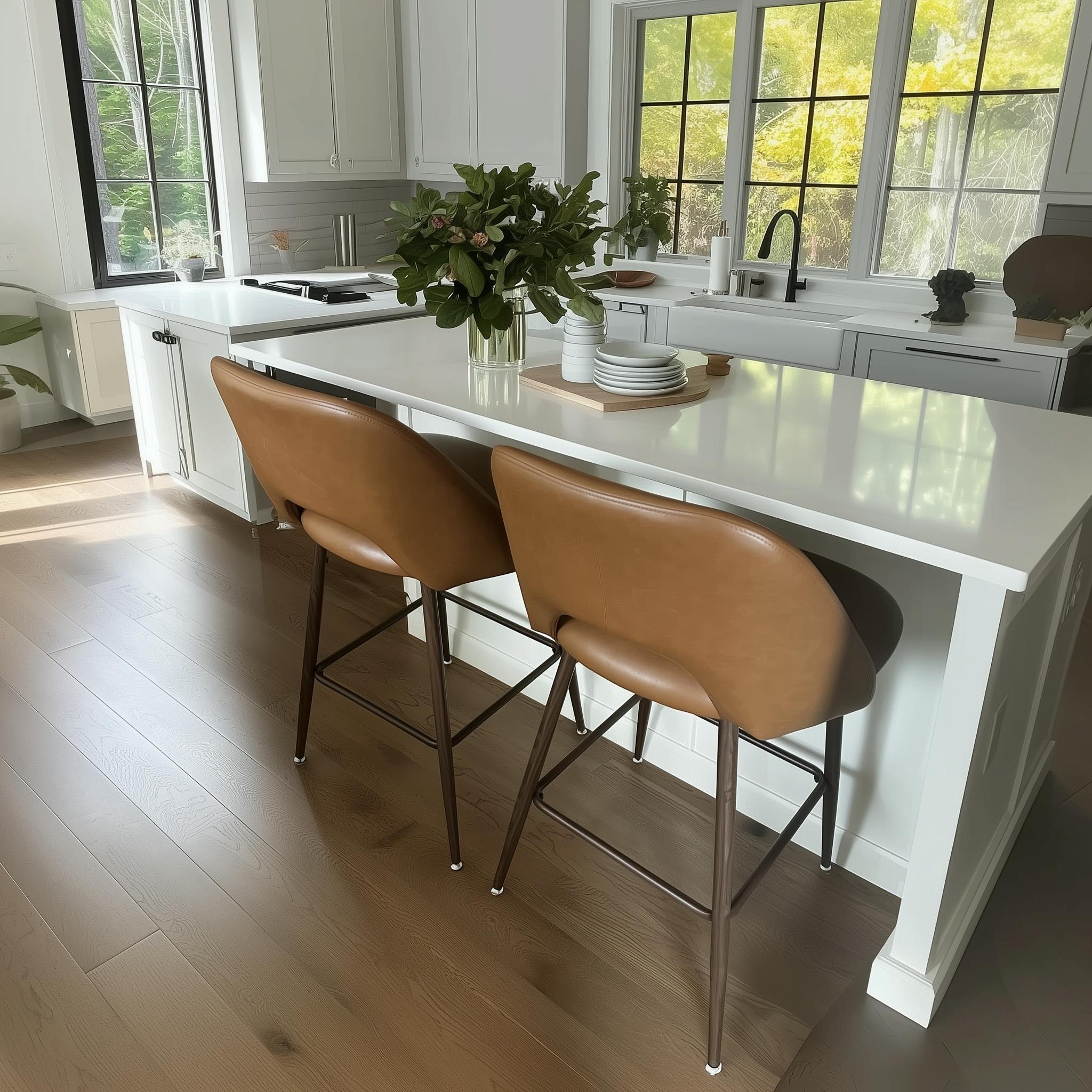 Available in two stunning colors—modern tan and classic black—the material looks just like genuine leather, giving your dining space a sophisticated and modern feel. Faux leather also makes cleaning a breeze, so it's perfect for busy households.