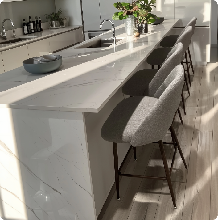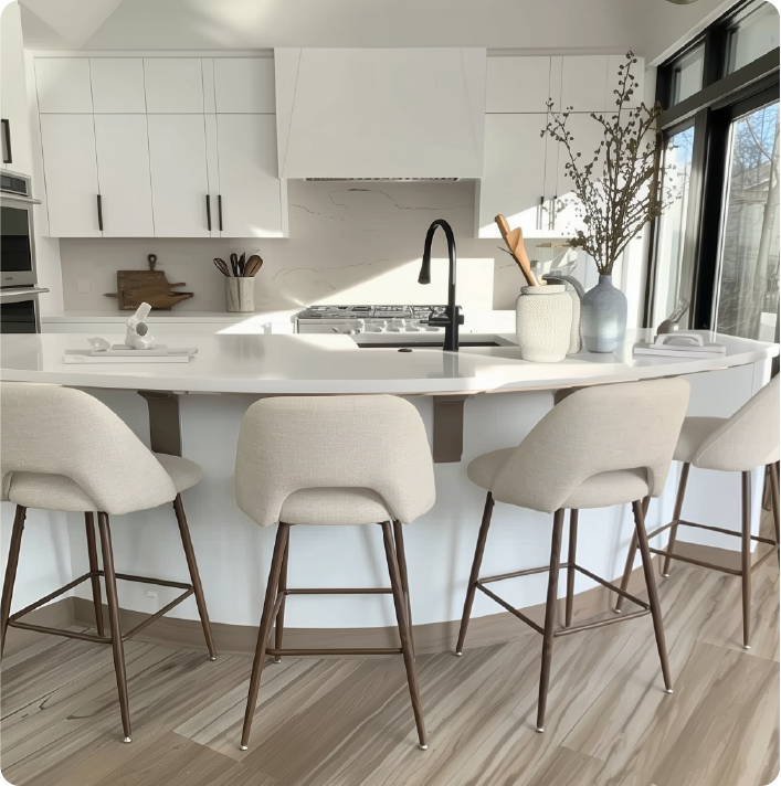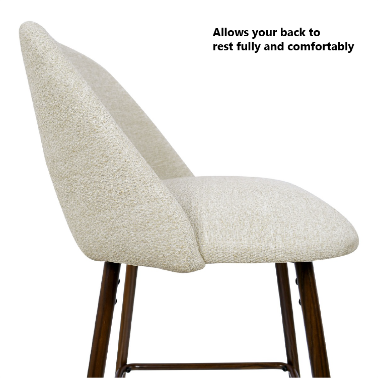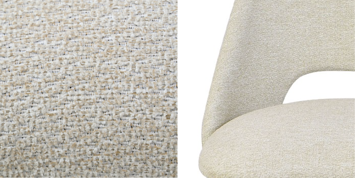 The fabric is textured chenille with a clear weave pattern that's durable and easy to maintain, making it ideal for everyday use! Its standout curved backrest with a cut-out detail offers full support and comfort, perfect for long meals or conversations. Pair it with the matching Edwin dining chair for a perfectly cohesive kitchen and dining look!