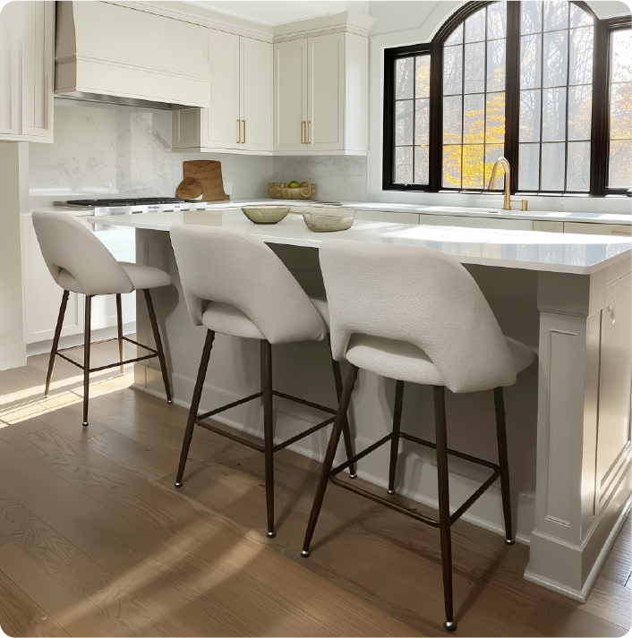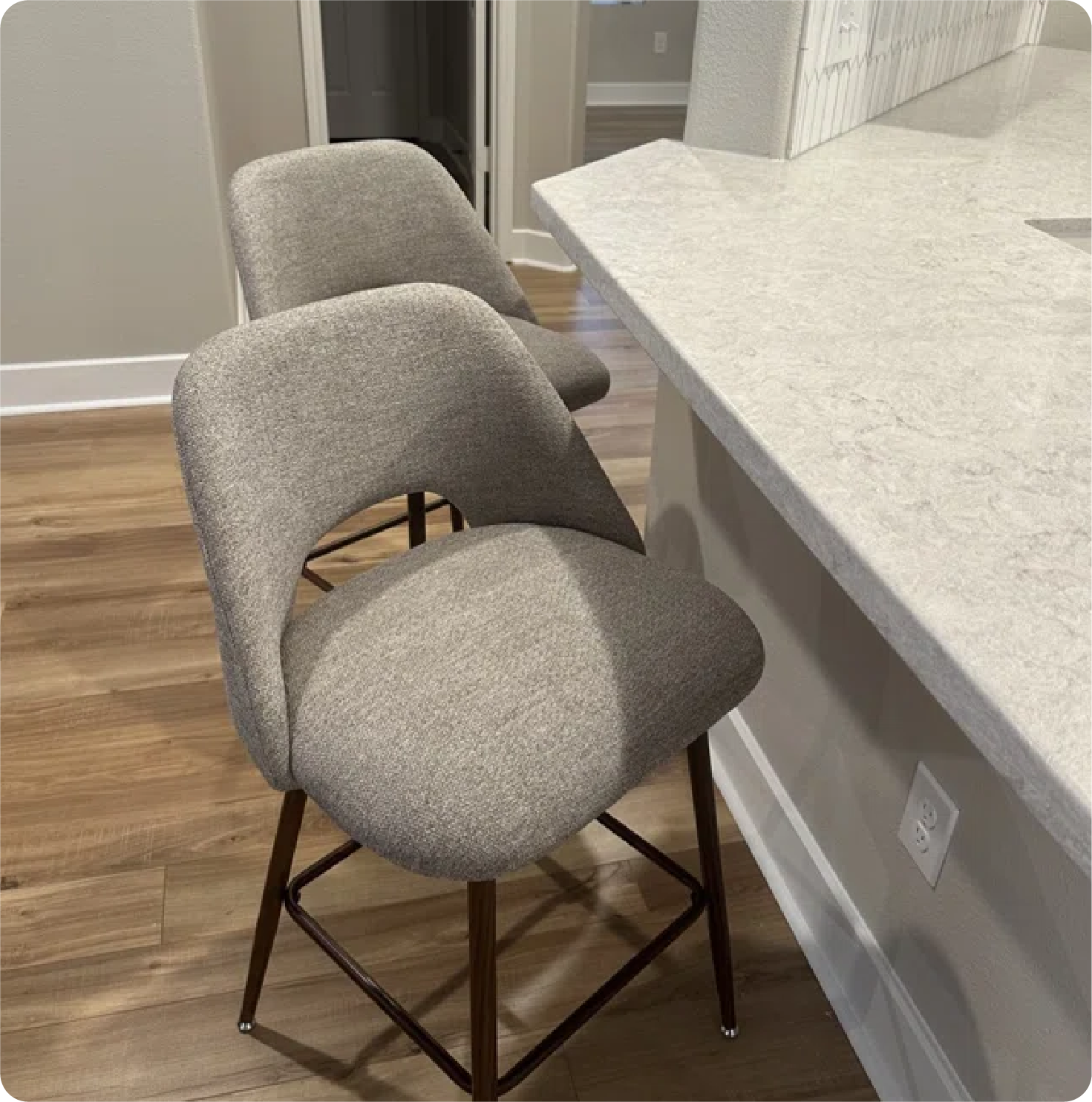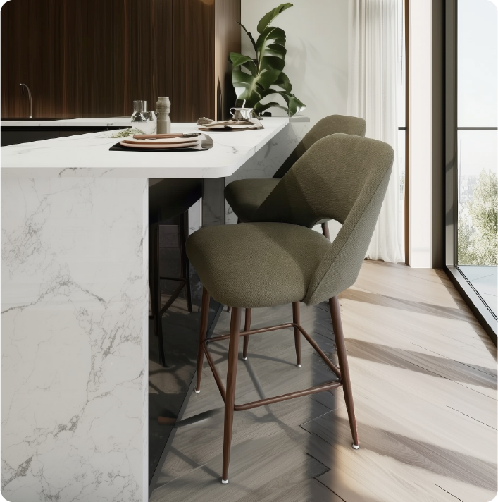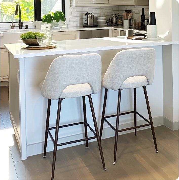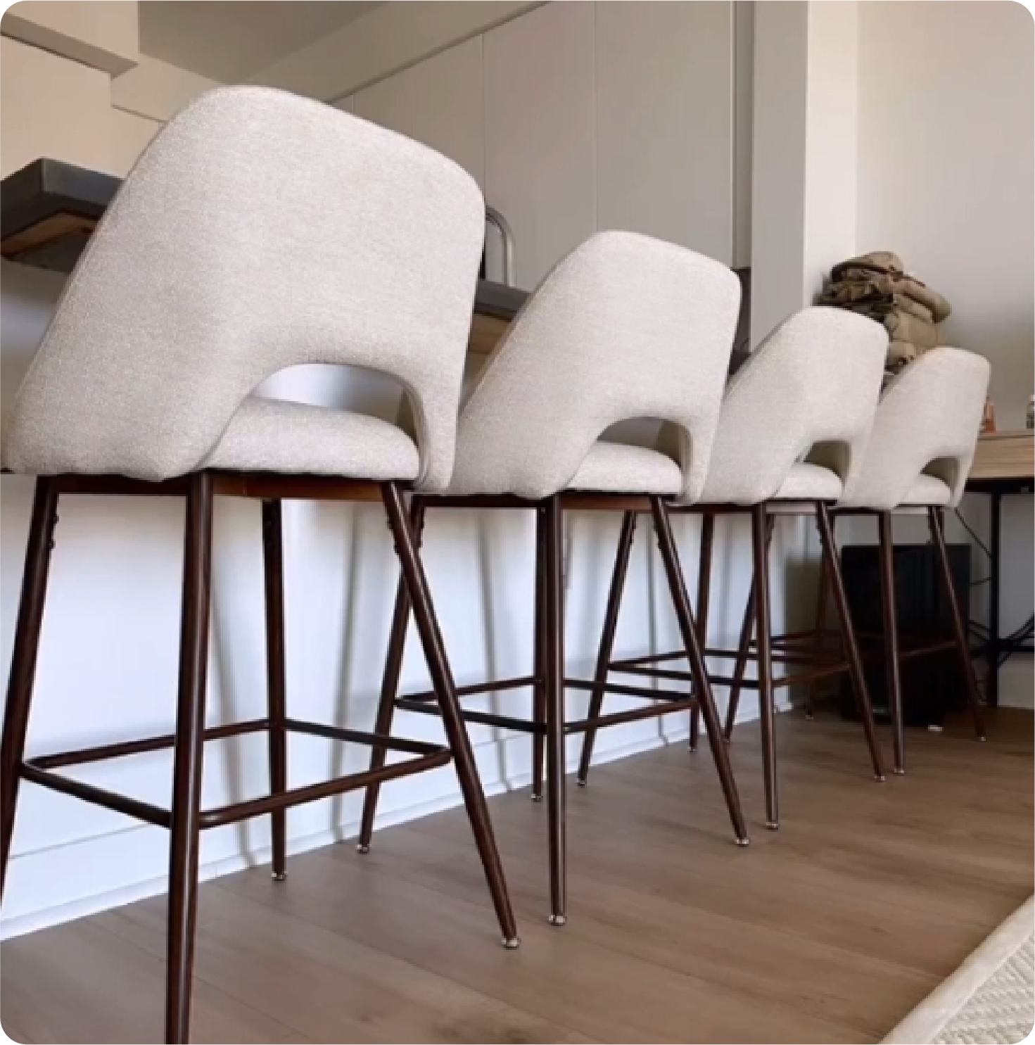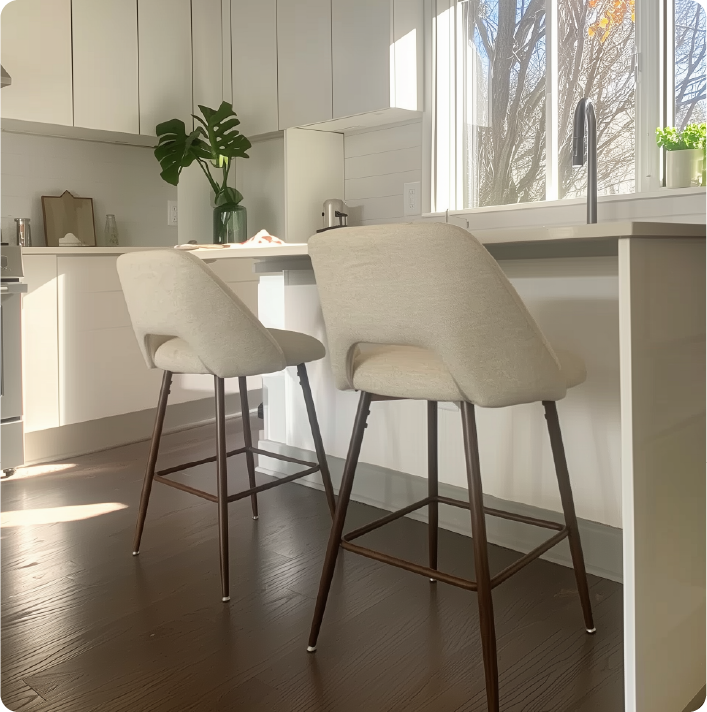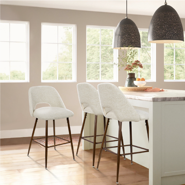 The Edwin counter stool has been a customer favorite for 5 years, and it's easy to see why. The walnut version is the most versatile, with metal legs finished in a warm walnut wood grain for a natural, cozy vibe.