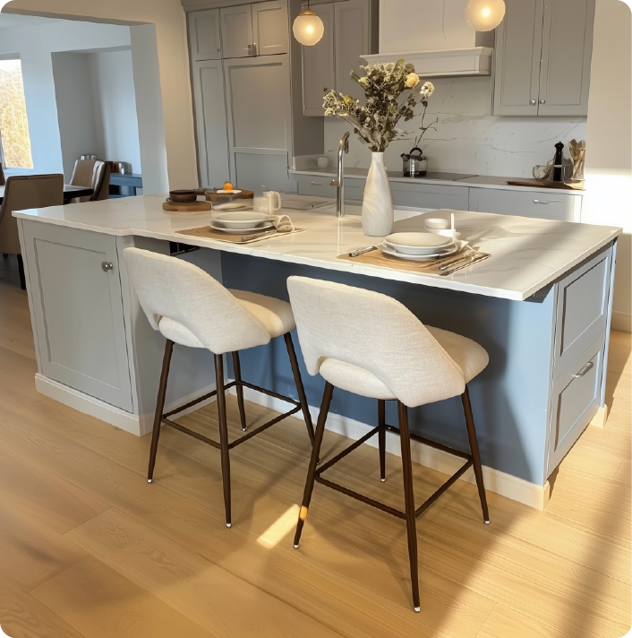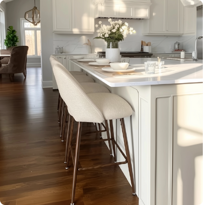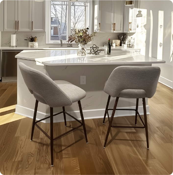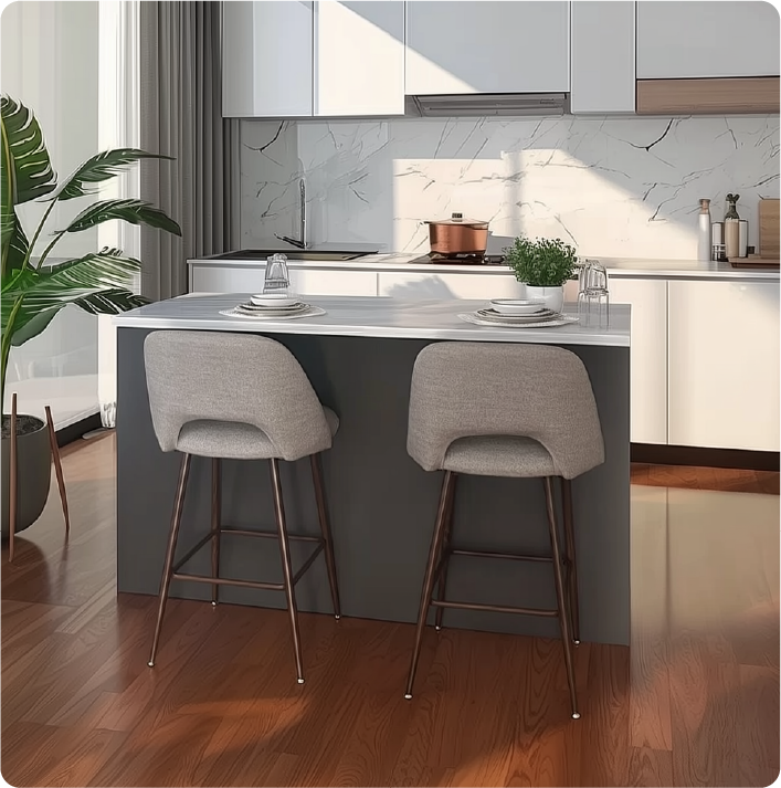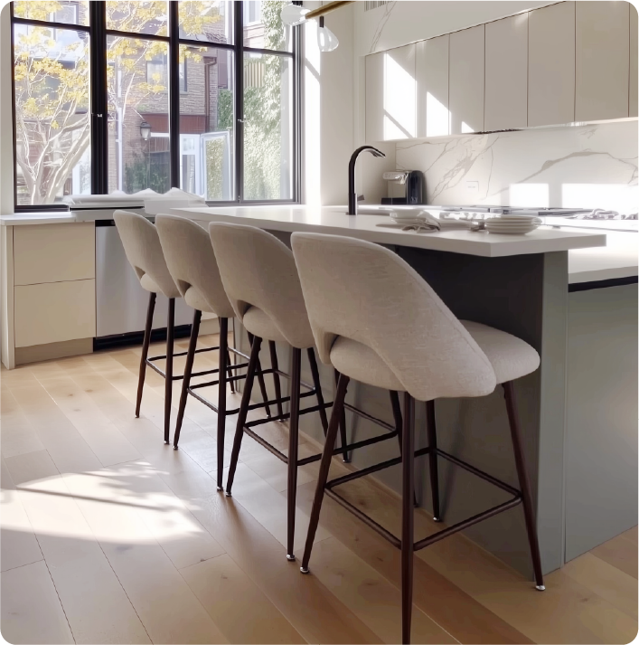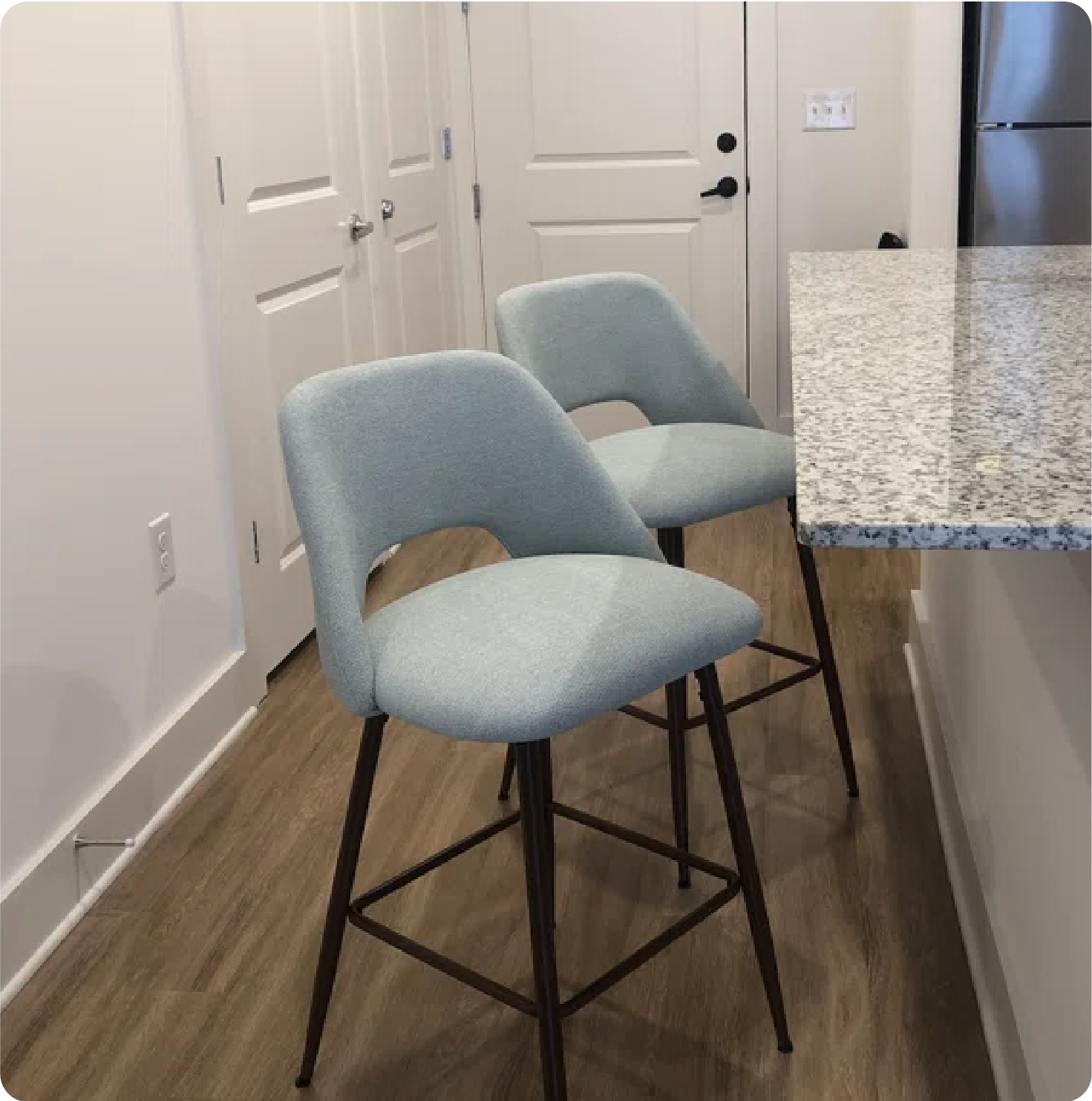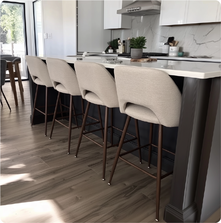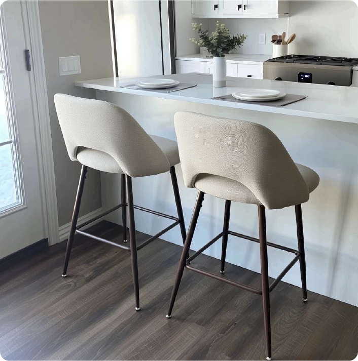 The Edwin counter stool has been a customer favorite for 5 years, and it's easy to see why. The walnut version is the most versatile, with metal legs finished in a warm walnut wood grain for a natural, cozy vibe.
