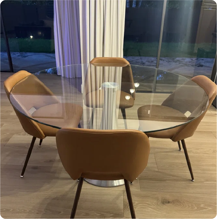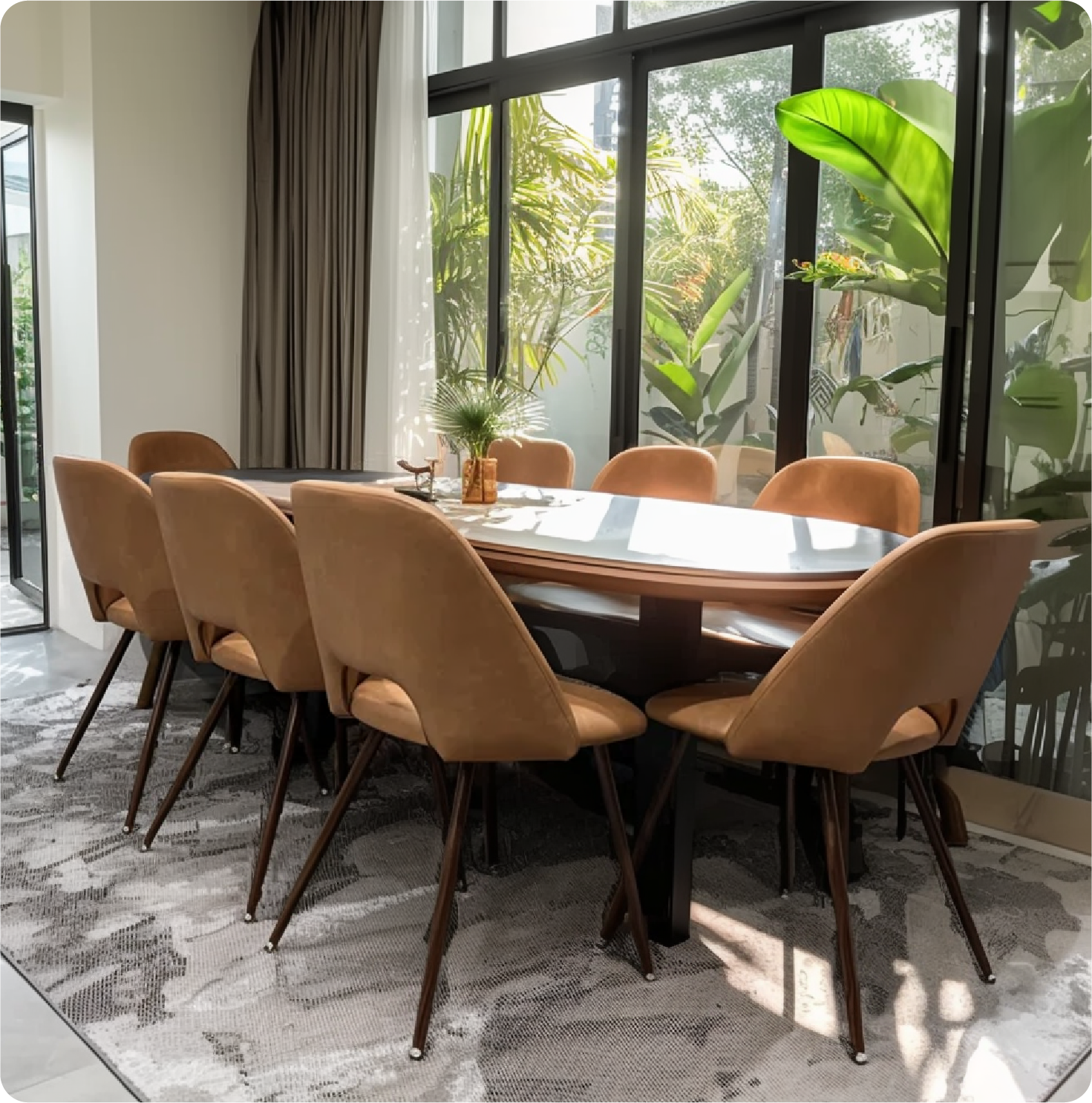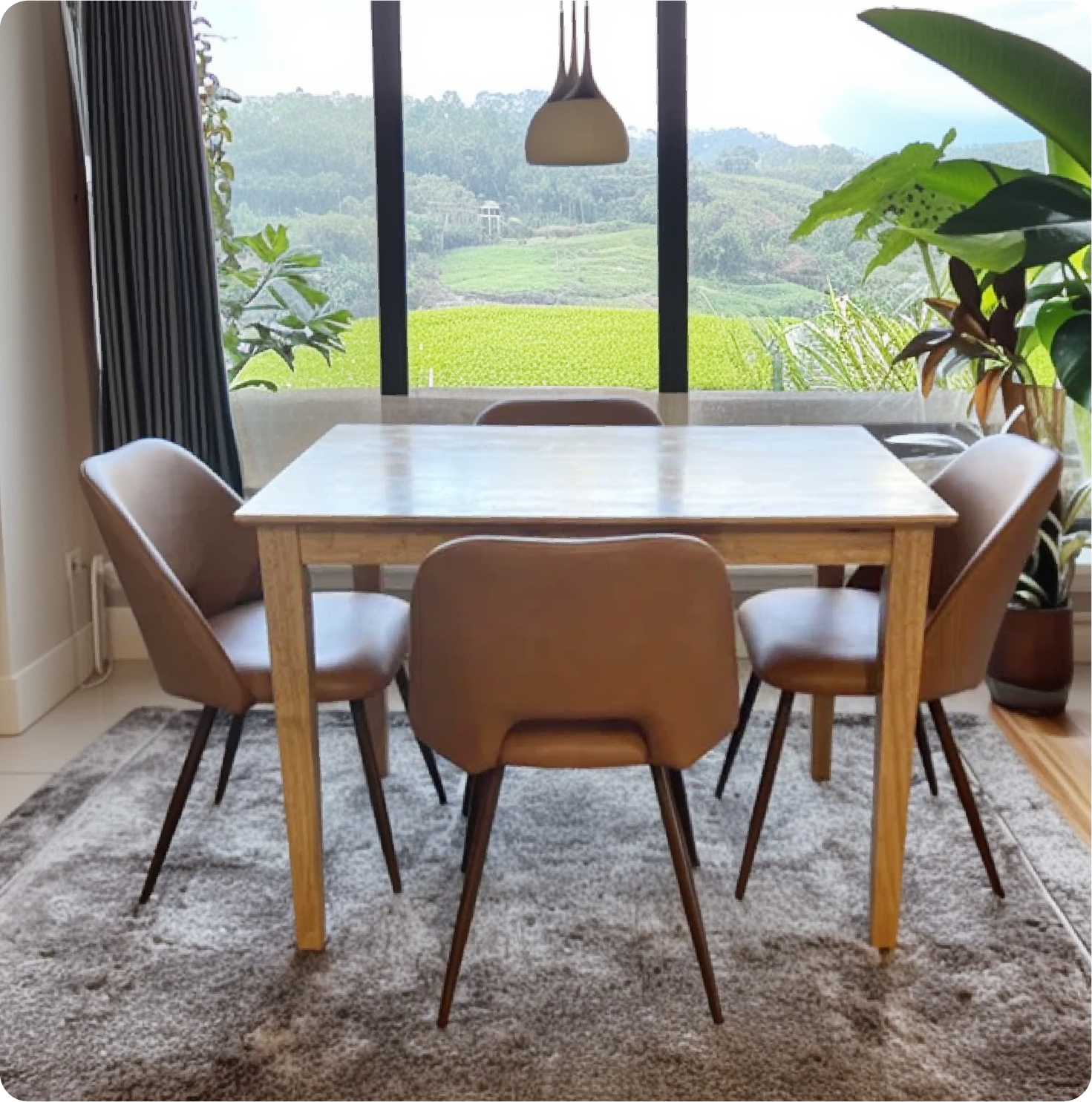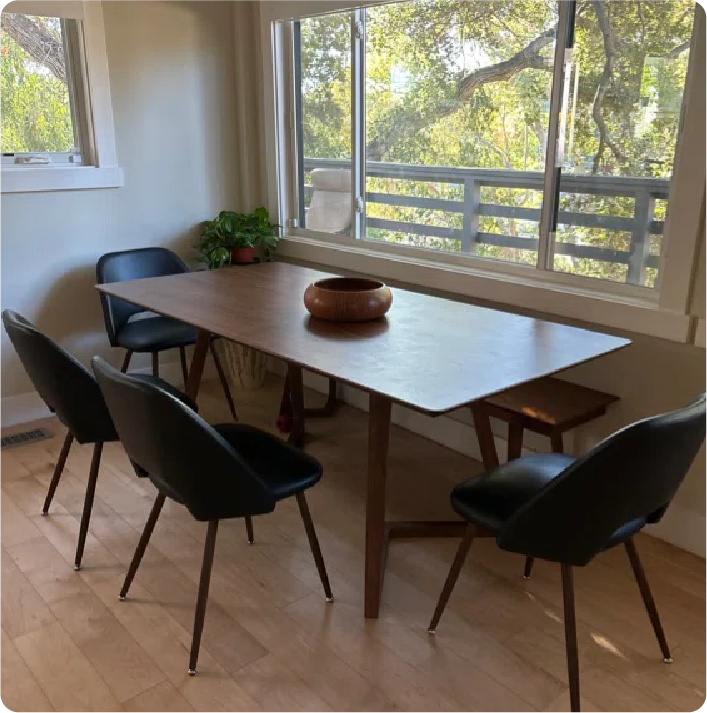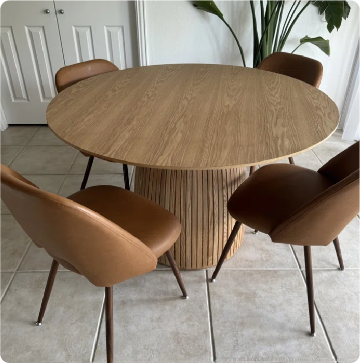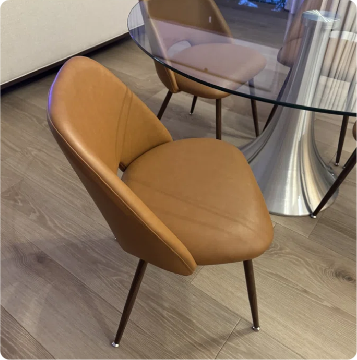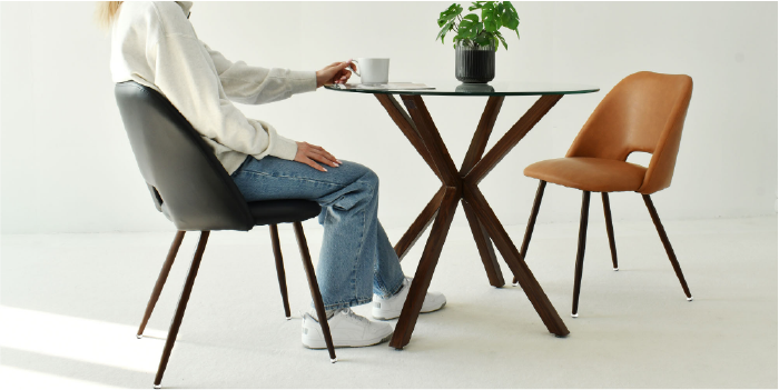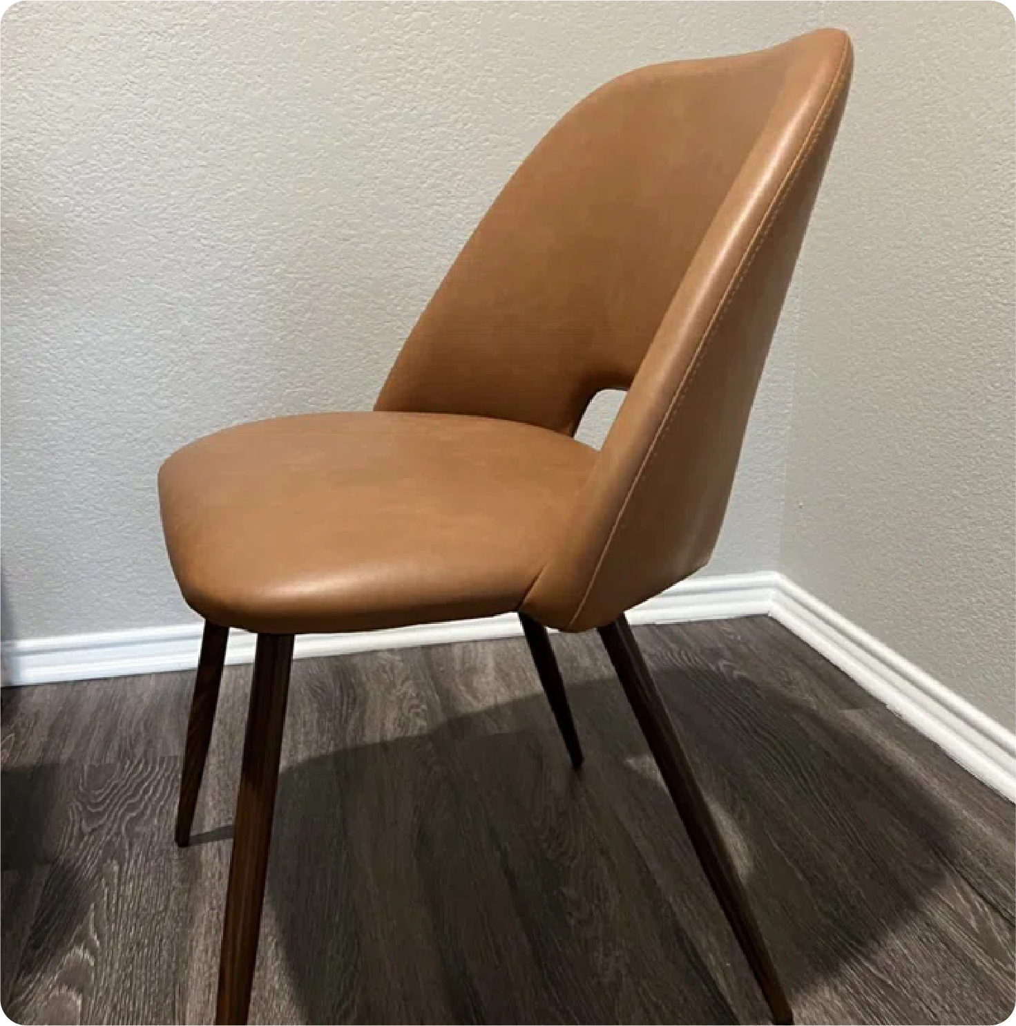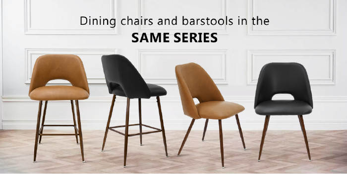 The Edwin series now comes in a sleek faux leather version! Available in two stunning colors—modern tan and classic black—the material looks just like genuine leather, giving your dining space a sophisticated and modern feel. Faux leather also makes cleaning a breeze, so it's perfect for busy households.