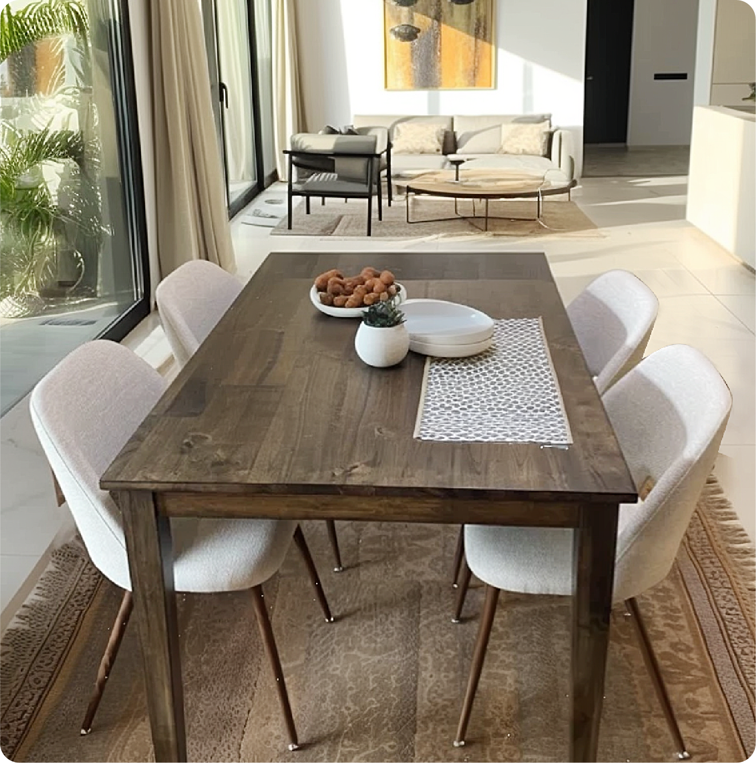 Five years ago, we introduced the Edwin series to the U.S. market, and it's still one of our bestsellers! The walnut version is by far the easiest to style. The metal legs are finished with a warm walnut wood grain, giving them a natural, cozy feel.