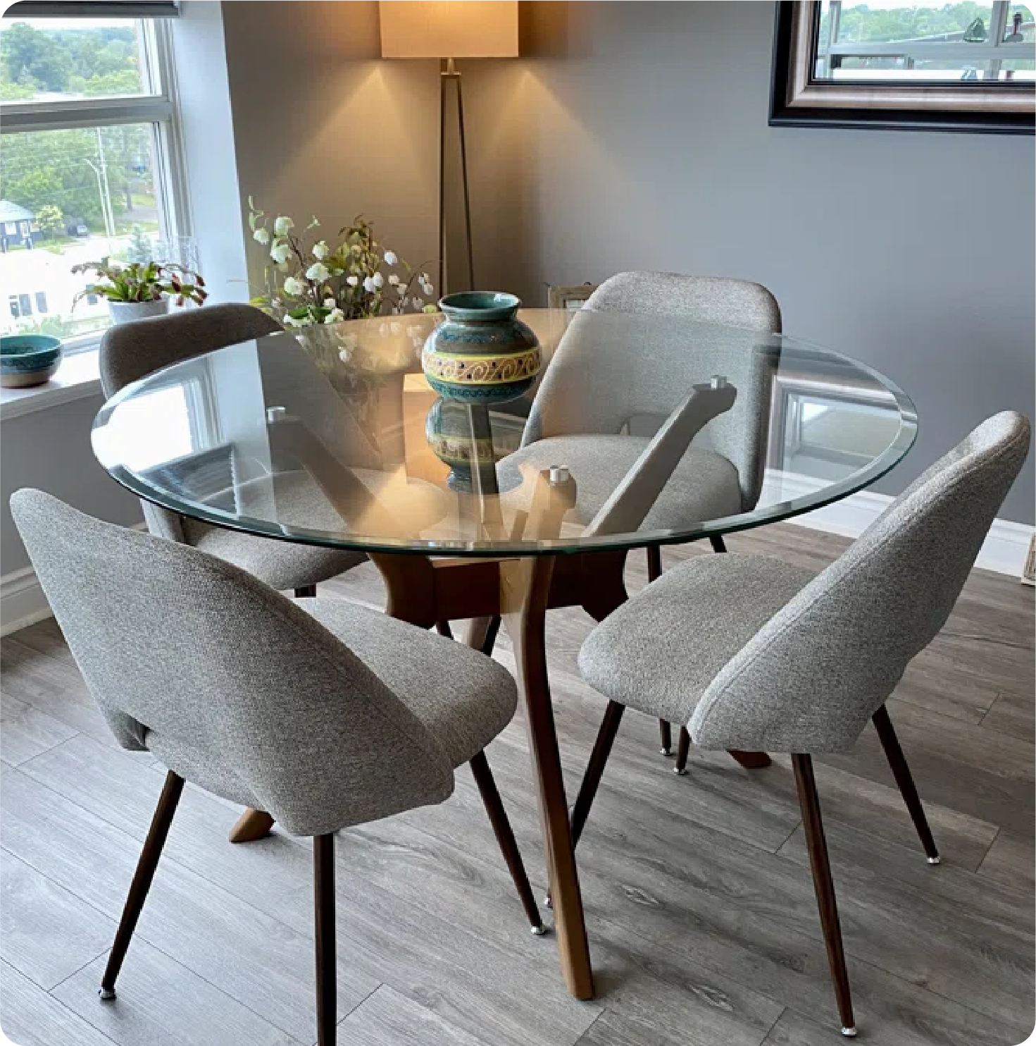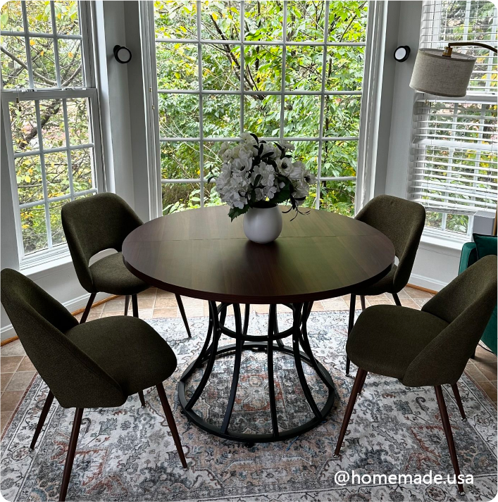Each box includes four chairs, making it the perfect pairing for any black or walnut-finished round dining table. Together, they create an irresistibly cute and cohesive dining set!