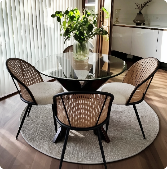 Jules Modern Upholstered Rattan Dining Chair (Set of 4)