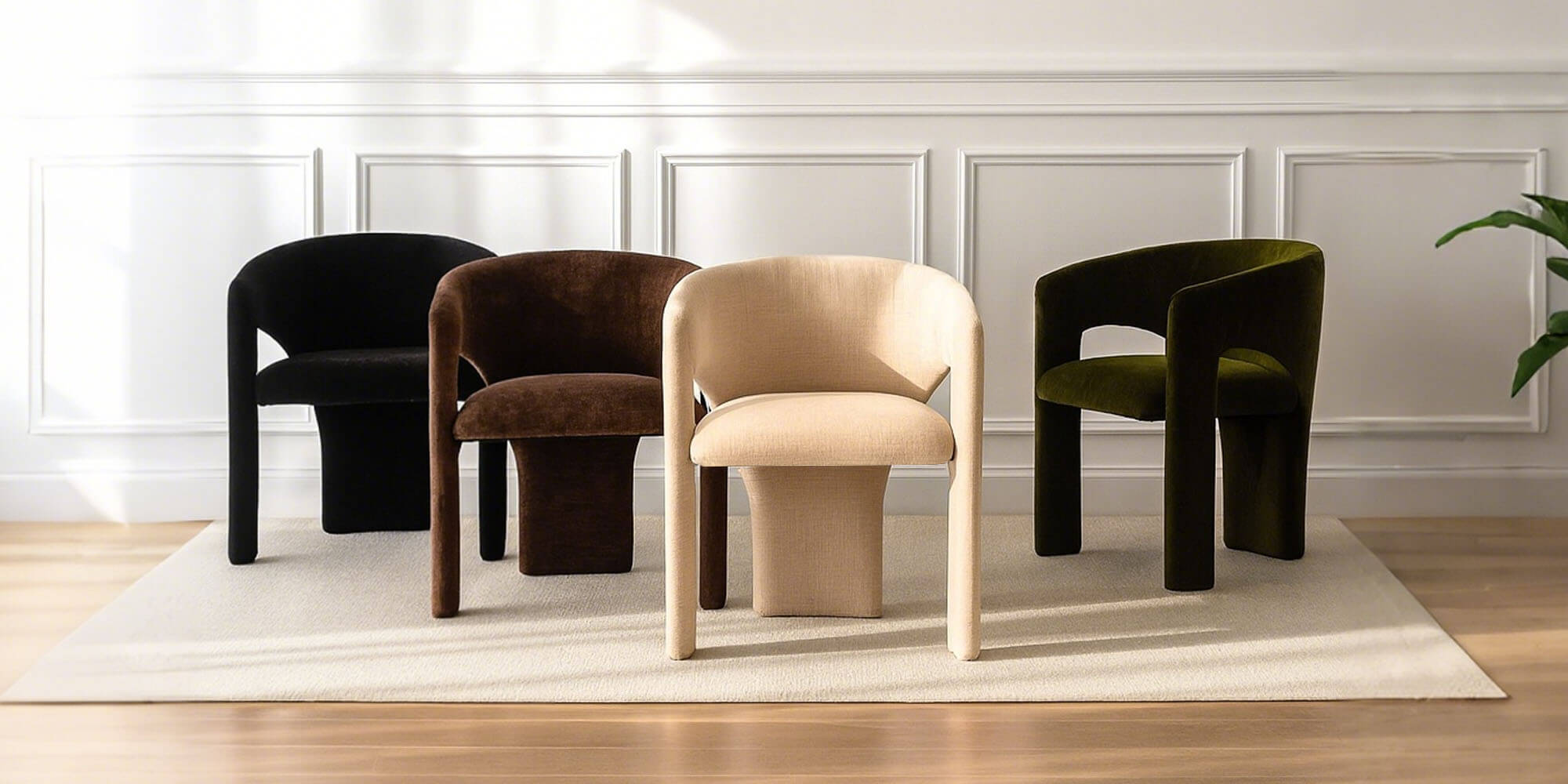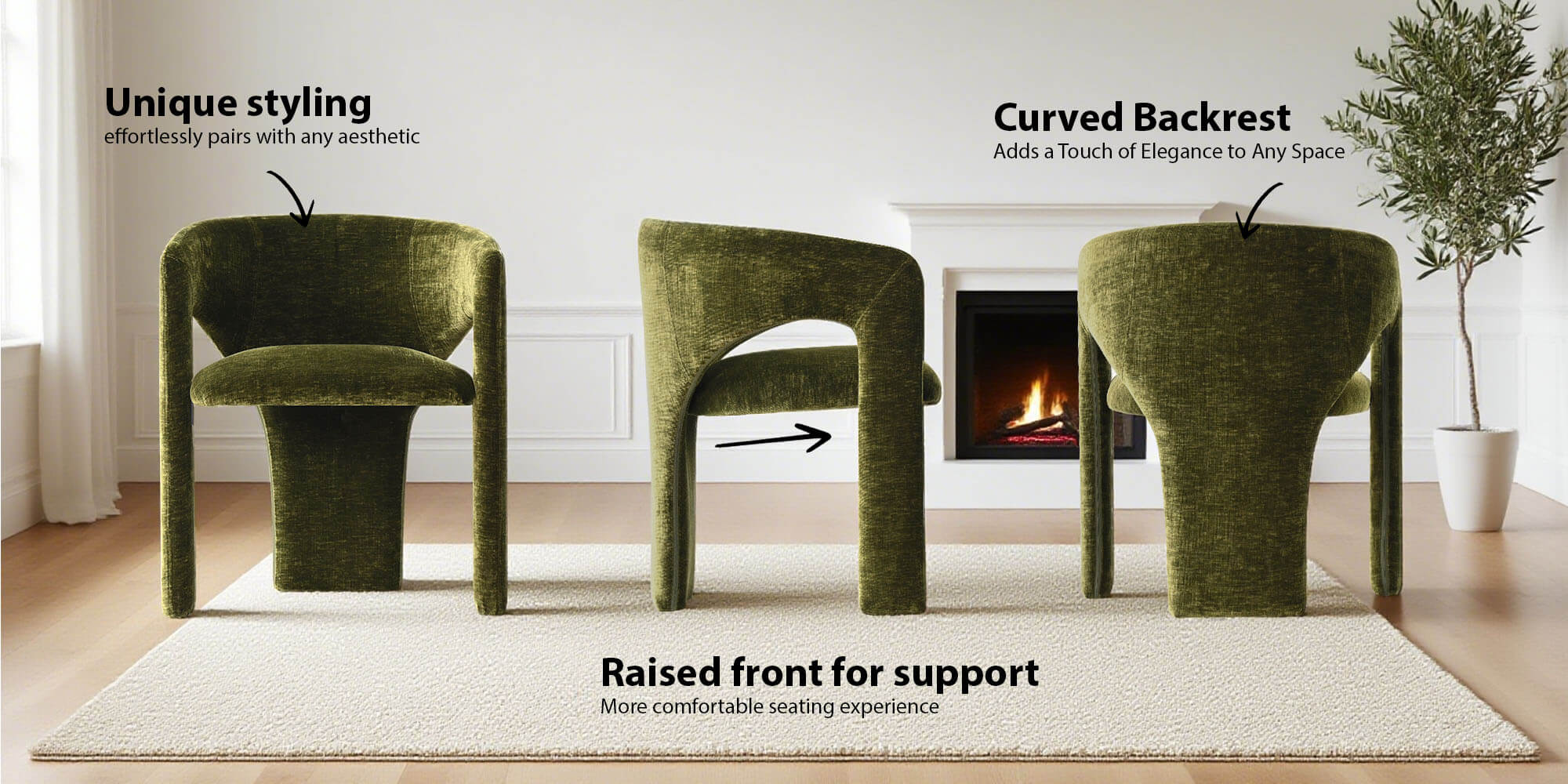 The Khloe Chenille Chair reads like a thoughtful design piece and feels like a cozy embrace—its sculptural, wraparound form and comfy contour cradle you while a plush 3.5" foam cushion provides reliable support. The slightly raised front edge and perfectly proportioned curved back work together to improve posture and comfort, and the chair tucks neatly under tables or islands for a tidy footprint. With a streamlined upholstered profile, Khloe is striking yet approachable—easy to style with contemporary, Scandinavian, or eclectic interiors, and simple to assemble and care for.