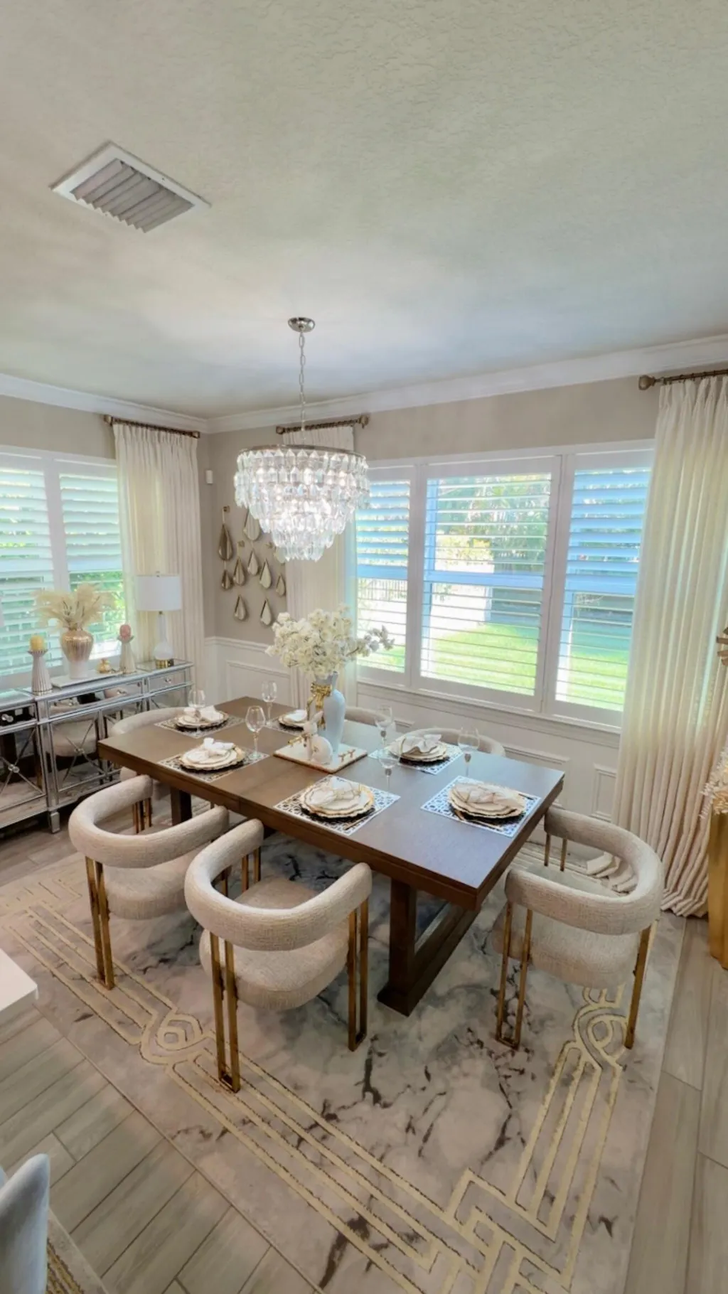 Elevate your dining space with these modern chairs that seamlessly blend style and functionality. Their low-profile design slips easily under your table, keeping the area neat and spacious. A polished gold metal frame, supported by three distinctive sled-inspired legs, adds a touch of refined elegance.Meanwhile, the wooden seat and back are upholstered in soft chenille fabric with foam padding, ensuring luxurious comfort and reliable support for up to 260 pounds per chair. Plus, they’re easy to assemble.