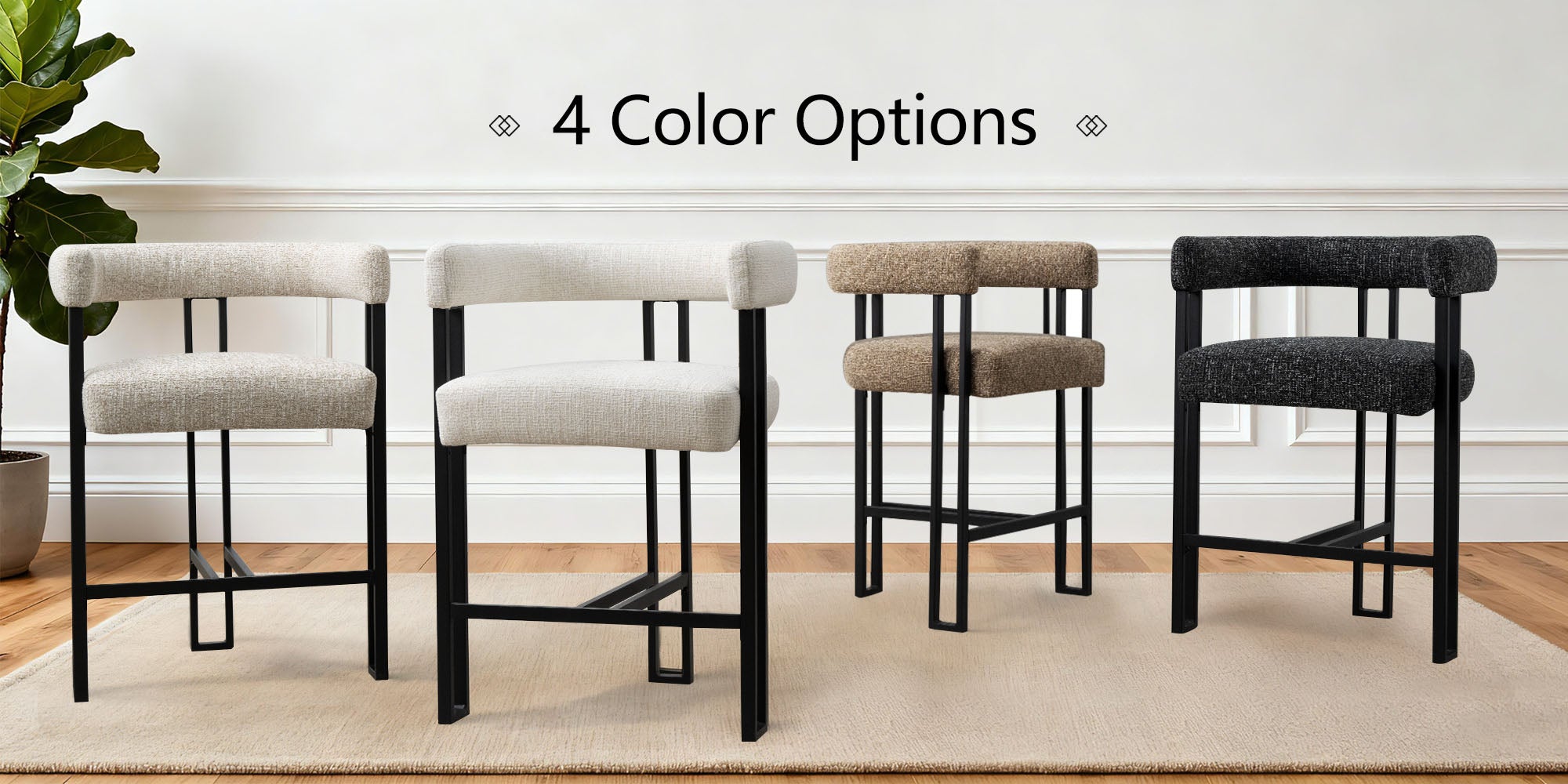 - The wooden seat and back are covered in soft chenille fabric with foam padding, supporting up to 260 pounds per chair.