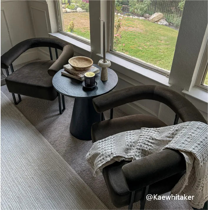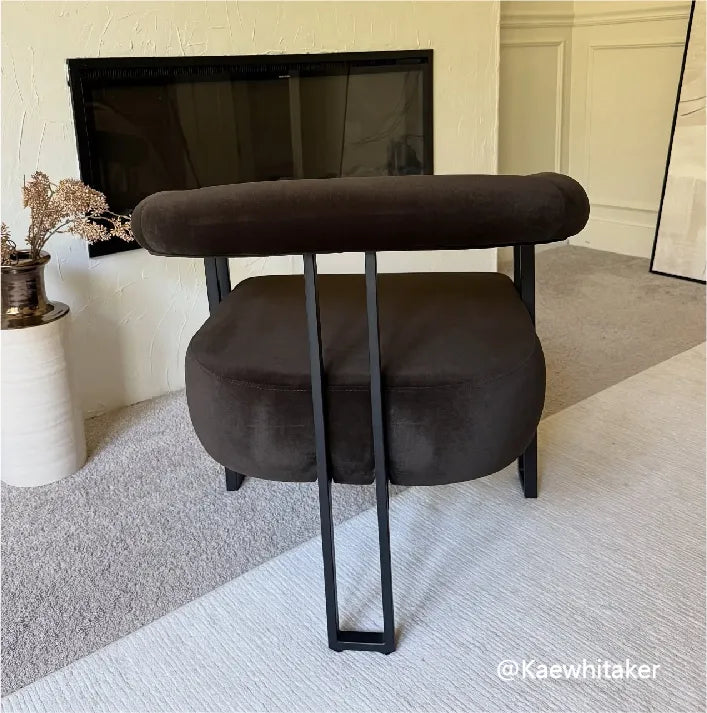 Make a bold contemporary statement with this three‑leg armchair. The sculptural barrel seat rests on a wide tripod base wrapped in heavyweight upholstery, while matte‑black steel legs add strength and style. With an 18‑inch seat height, it pulls up neatly to a dining table or stands out as an accent piece. A 7.5‑inch‑thick, high‑resilience foam cushion offers lasting comfort, and plastic glides safeguard your floors. Available in three on‑trend colors and tested to support up to 300 lb, this chair blends practical durability with refined elegance. We especially love the chocolate brown finish—warm, cozy, and timeless. If you love this tone, explore more in our Chocolate Brown Collection.