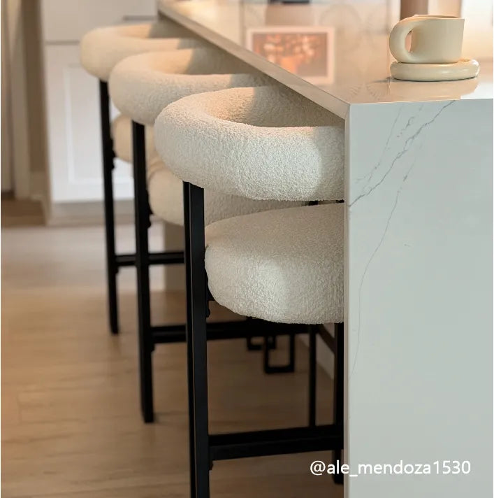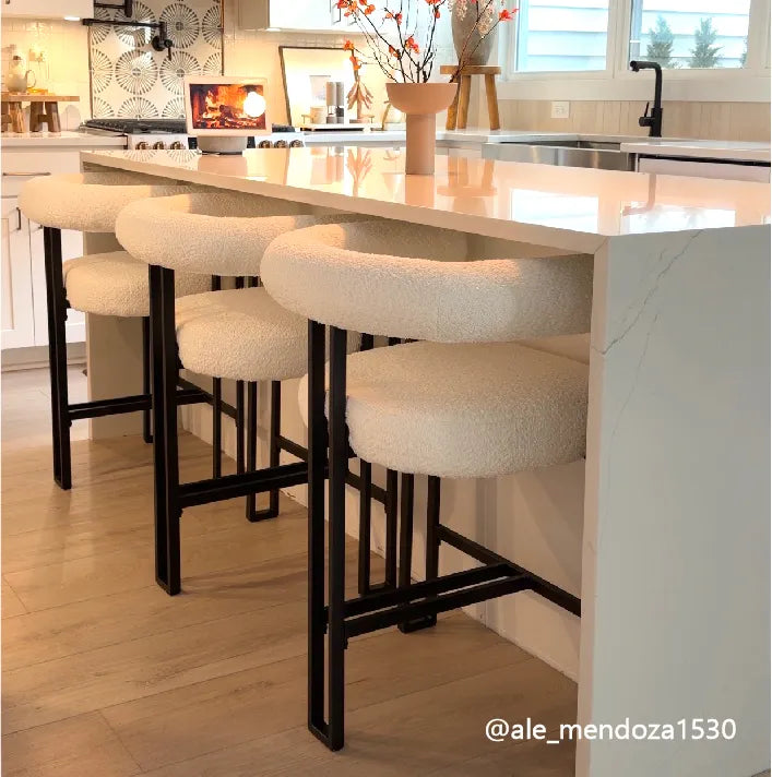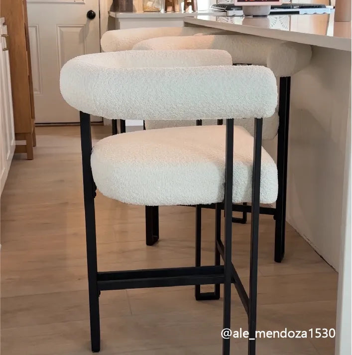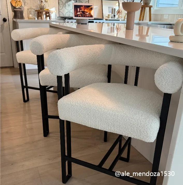 Wrapped in soft boucle upholstery, these stools bring warmth and sophistication to any kitchen or dining area. The armrests enhance relaxation, making them ideal for casual meals or hosting guests with style and ease.