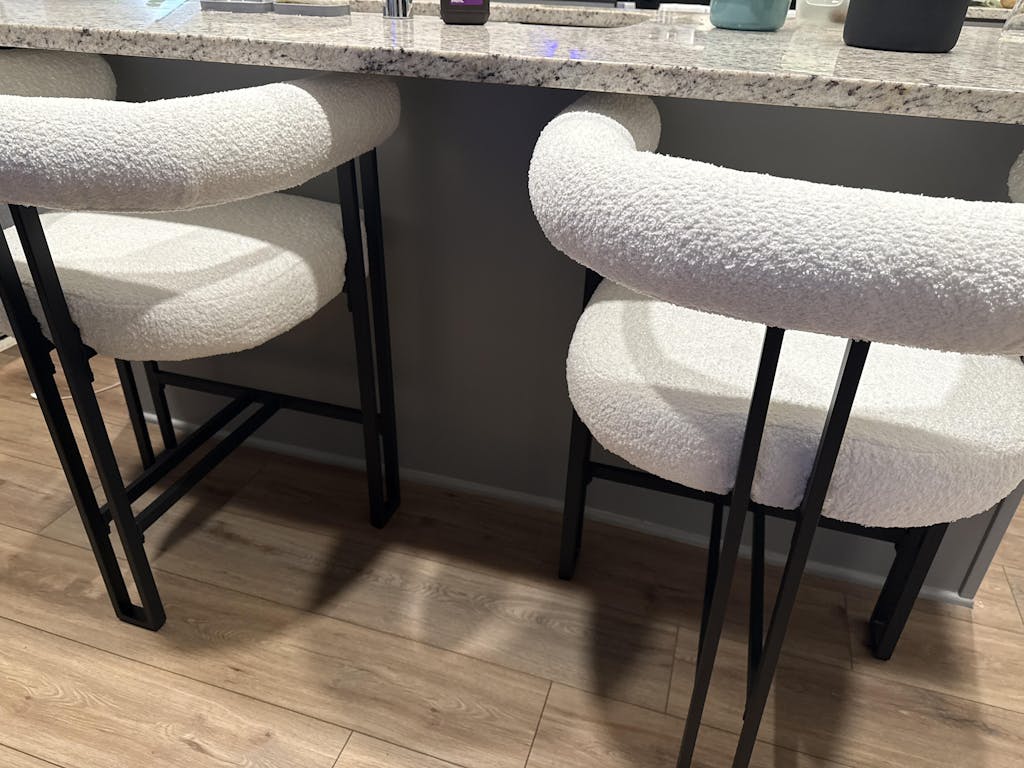 Wrapped in soft boucle upholstery, these stools bring warmth and sophistication to any kitchen or dining area. The armrests enhance relaxation, making them ideal for casual meals or hosting guests with style and ease.