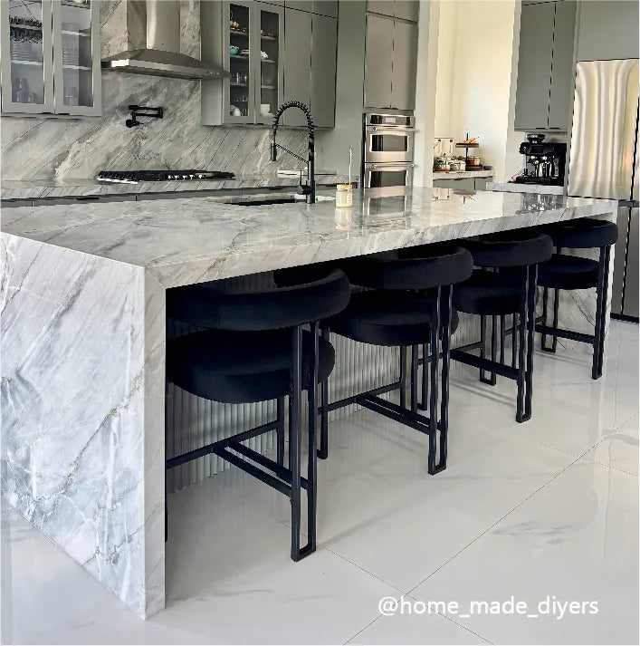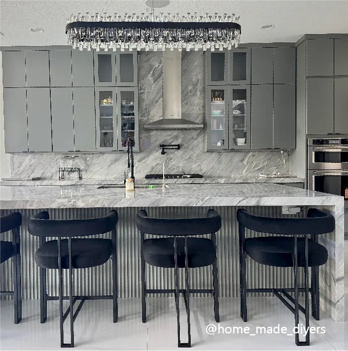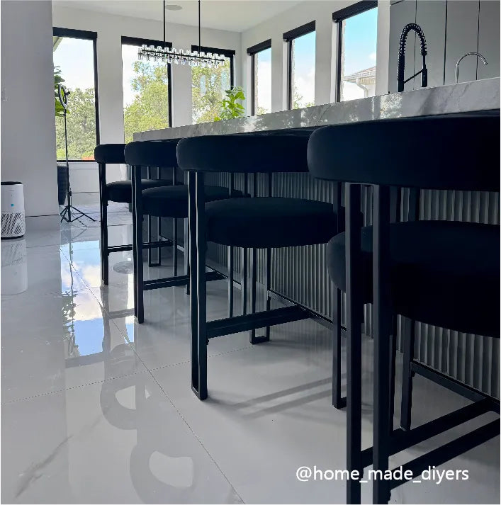 We designed the overall height to be just right at 33.5", so you can easily slide it completely under your kitchen island. This keeps your kitchen looking clean and tidy while still giving you plenty of room to relax. The sleek design looks gorgeous from the back, creating a stylish, cohesive vibe when lined up at your kitchen island.