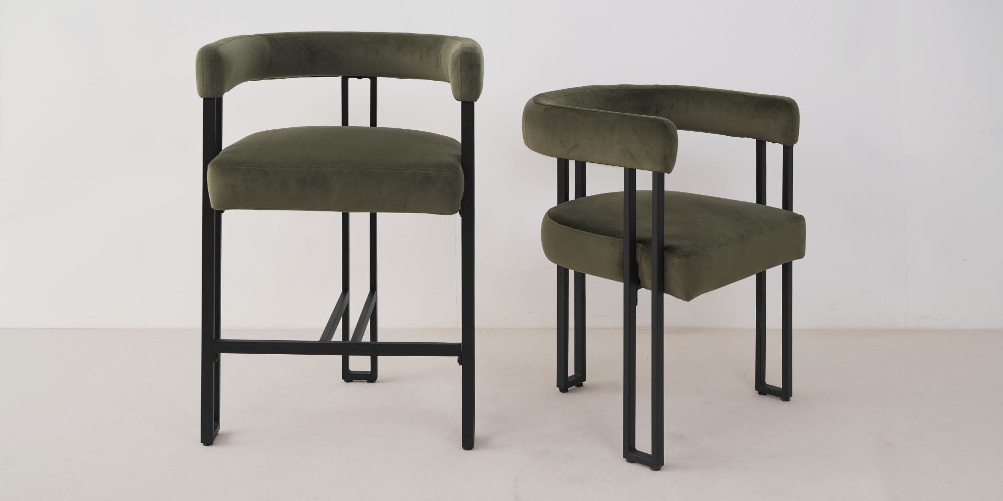 The Mia counter stool is upholstered in luxurious 330g velvet with a subtle sheen and rich texture, and comes in a range of colors to match your dining chairs. We especially love the chocolate brown finish—warm, cozy, and timeless. If you love this tone, explore more in our Chocolate Brown Collection. Pair them together for a cohesive, designer look in your dining and kitchen spaces.