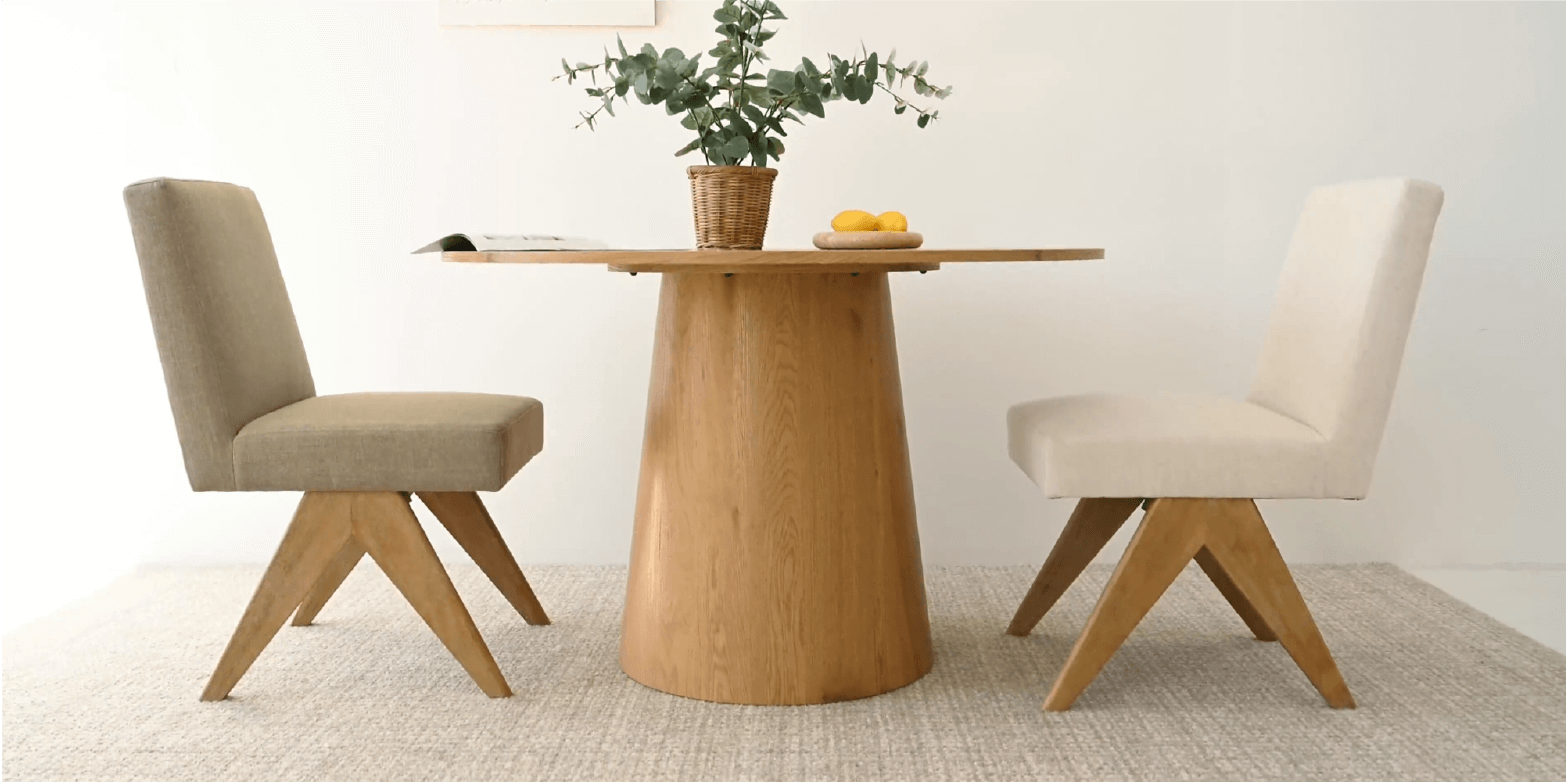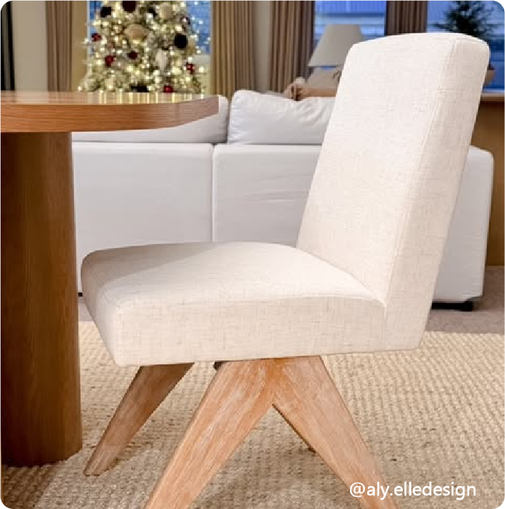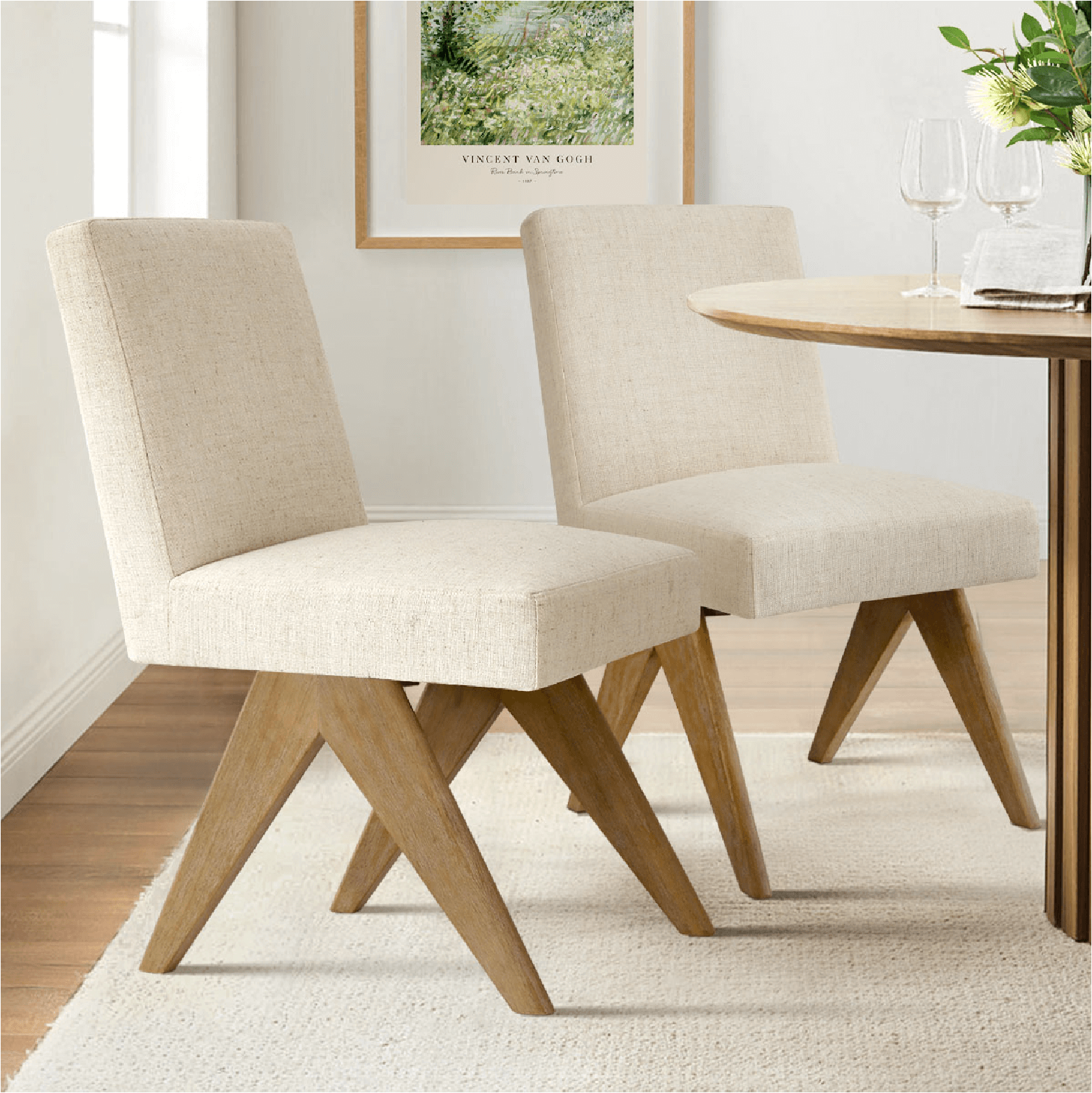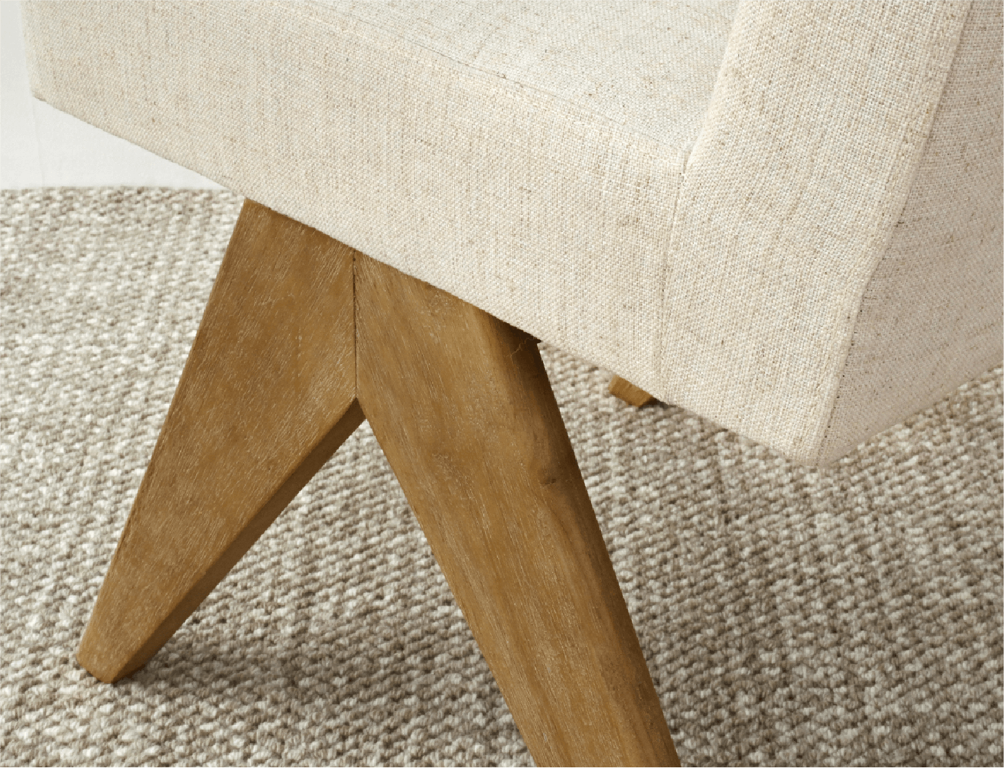 The whitewashed finish on the solid rubber wood legs adds a rustic patina, perfectly complementing the fabric. And let's talk about those inverted V-shaped legs—they're the highlight of the entire series, combining style and stability in one sleek design.