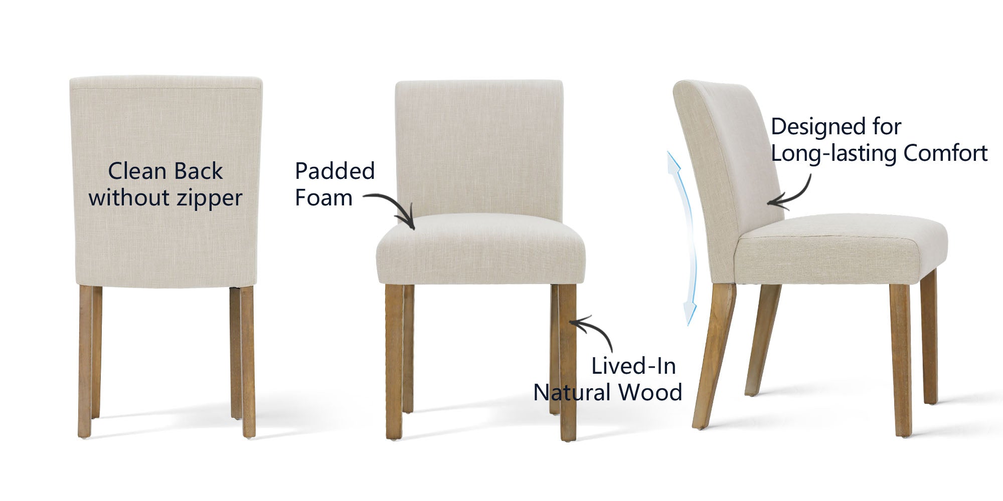 The high back, inspired by classic Parsons silhouettes, is upholstered in soft linen fabric and generously padded with polyester for added comfort. Designed with square seats for a smooth seating experience, these chairs support up to 260 lbs, making them both stylish and functional additions to your dining area.