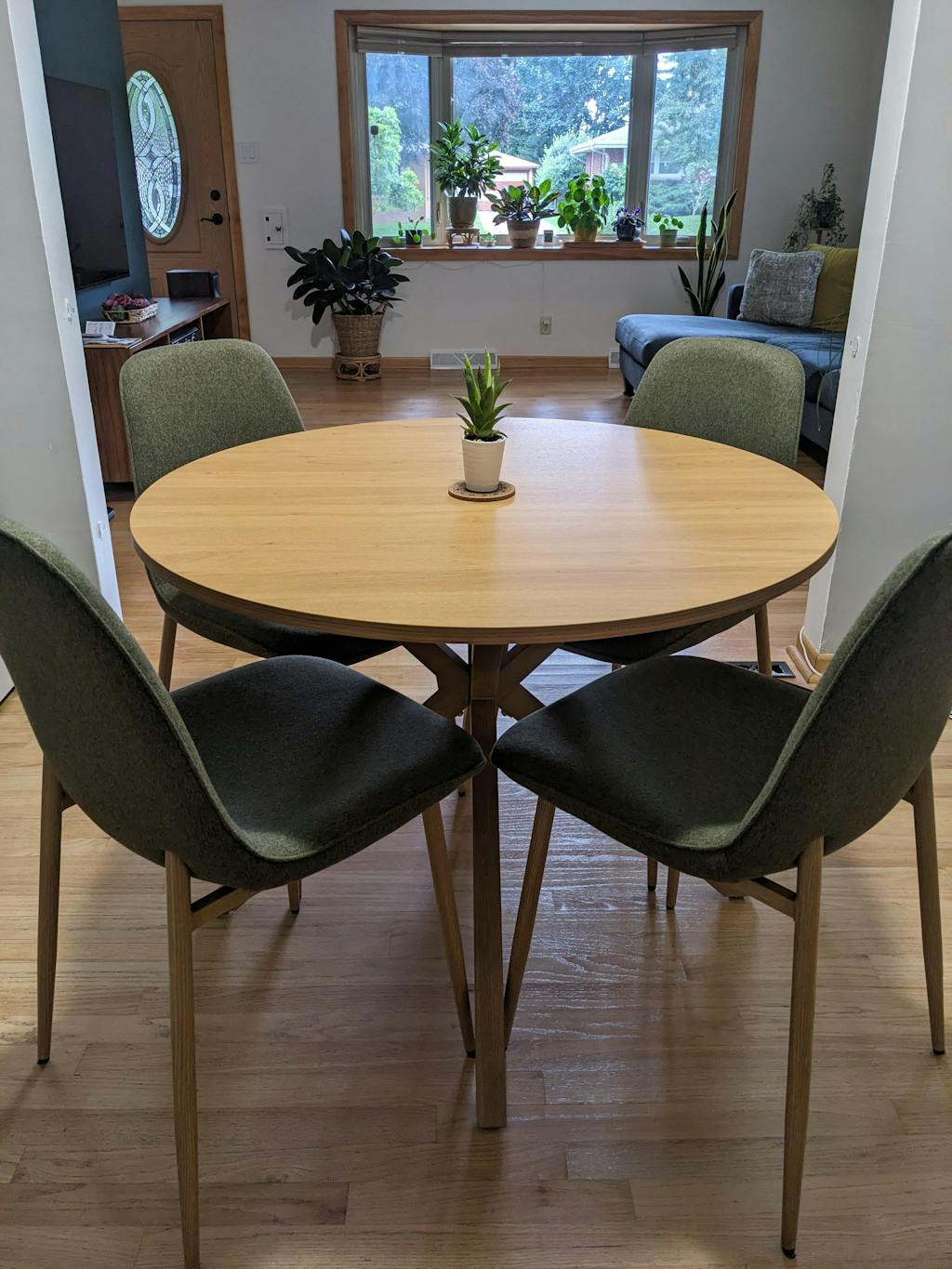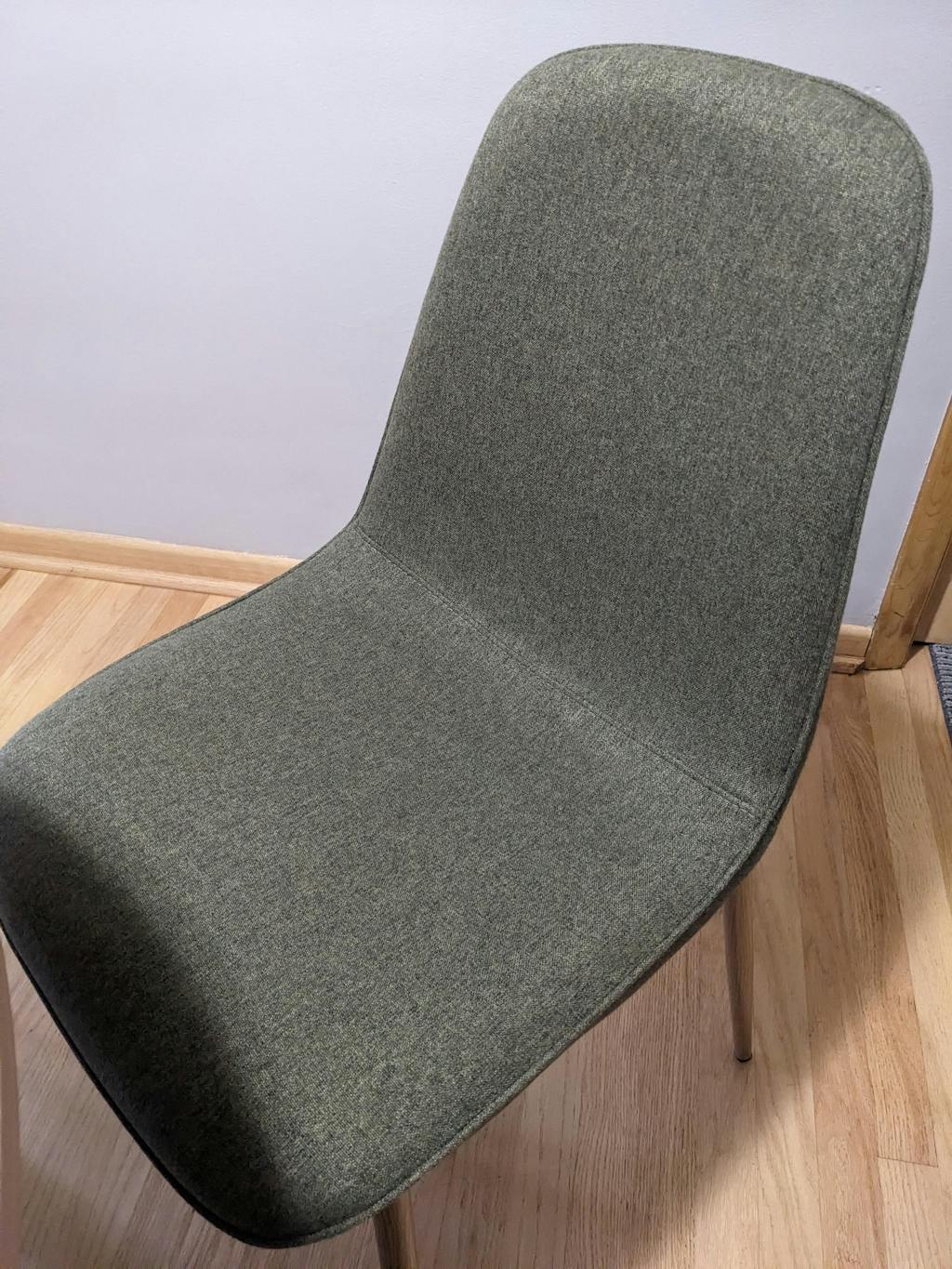 - Metal legs with a light oak wood grain finish that feels like real wood.
