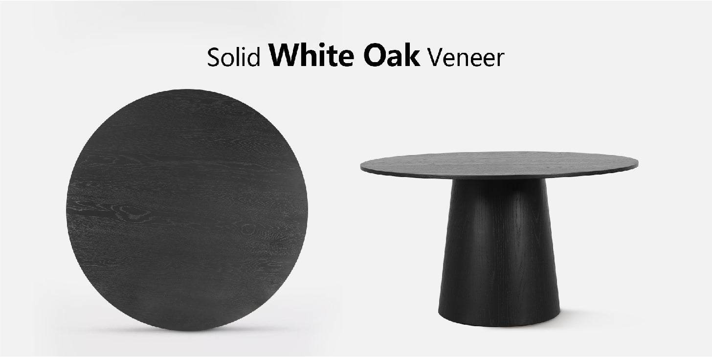 This dining table is crafted from manufactured wood with a genuine white oak veneer, showcasing stunning, natural cathedral wood grain patterns. You'll love how the wood grain stands out—it looks and feels expensive!