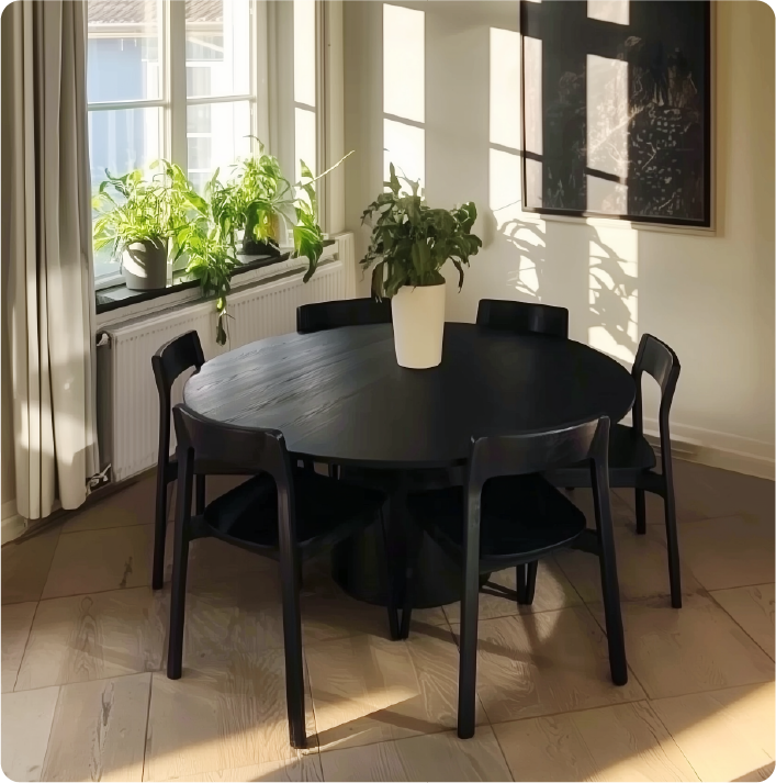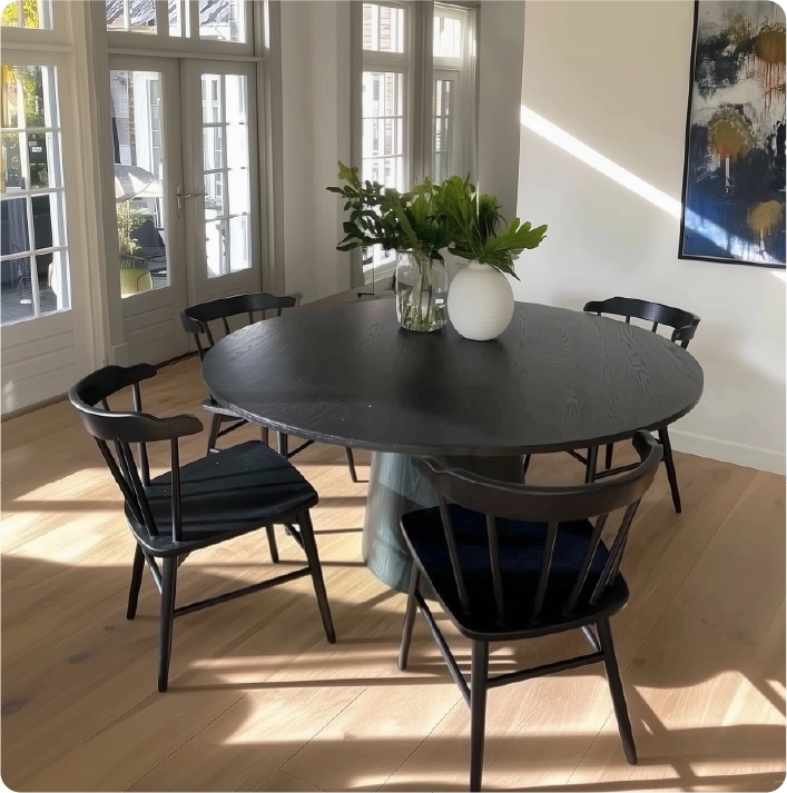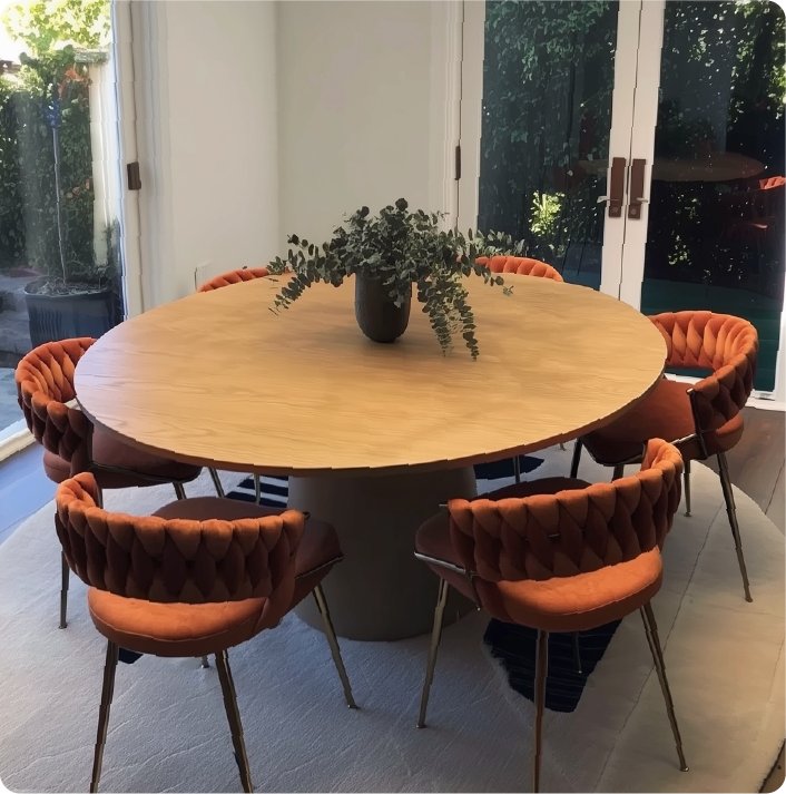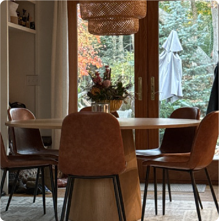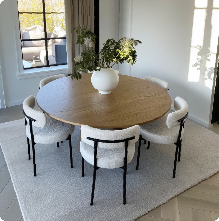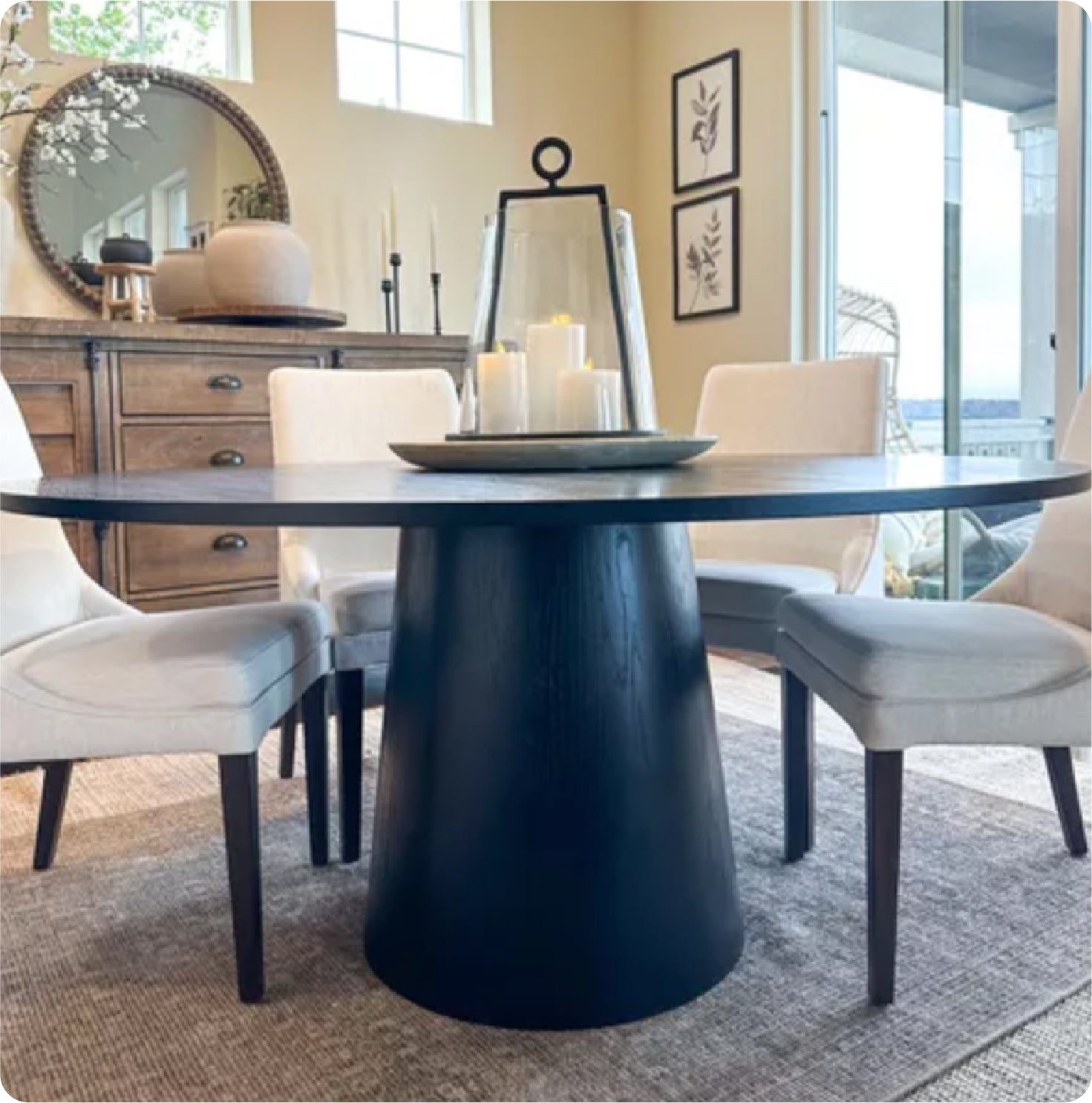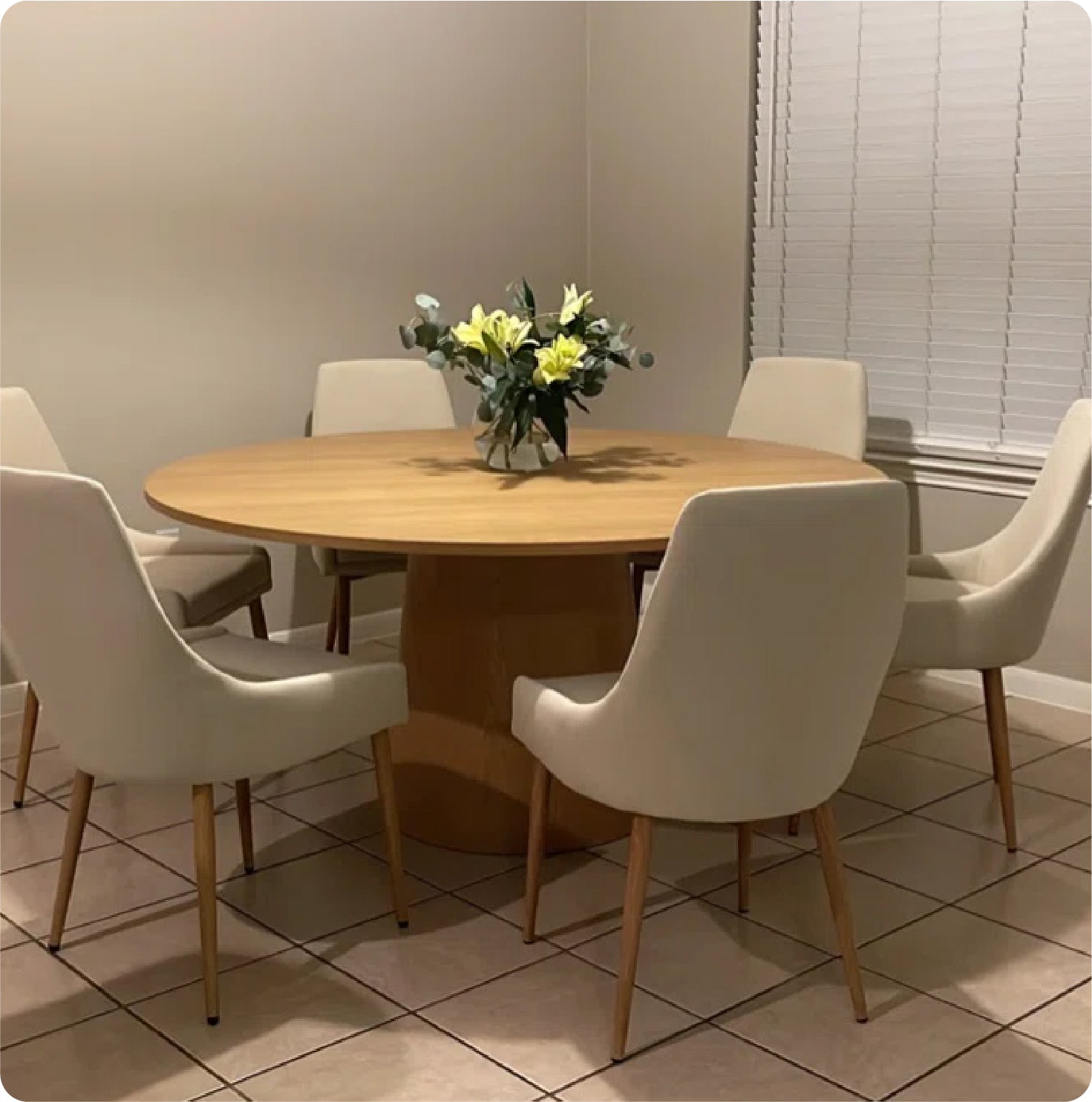 At 60", it's the perfect size for your kitchen or dining area—not too small, not too large. It comfortably fits 6‑8 chairs for everyday use, and you can easily pull up two more for guests. The sturdy base is well‑made and designed to last, plus assembly is a breeze with two people.