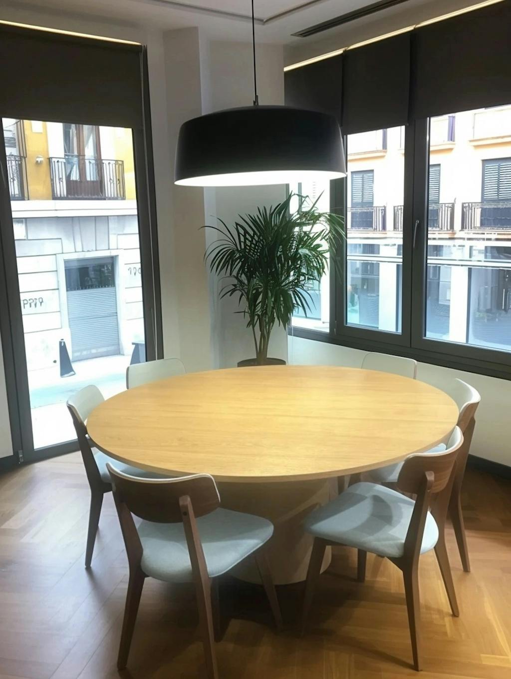 At 60", it's the perfect size for your kitchen or dining area—not too small, not too large. It comfortably fits 6‑8 chairs for everyday use, and you can easily pull up two more for guests. The sturdy base is well‑made and designed to last, plus assembly is a breeze with two people.