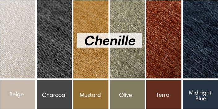 - Chenille fabric in gorgeous colors with a subtle, elegant sheen.