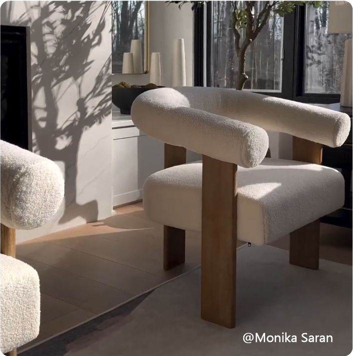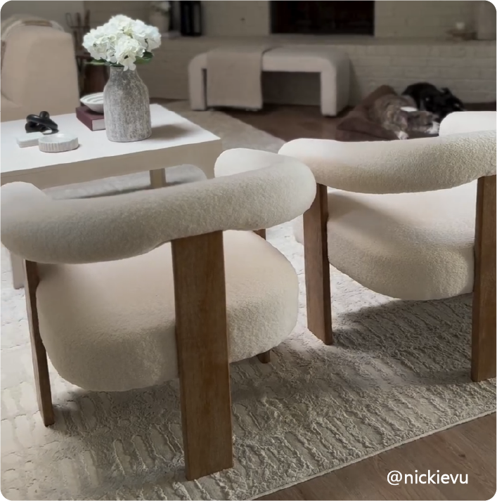 Upholstered in ultra-soft faux sherpa fabric, it's incredibly cozy—and trust us, it's bigger than it looks in the photo! The white-washed rubber wood frame adds a natural, beautiful touch, making this chair a true standout.